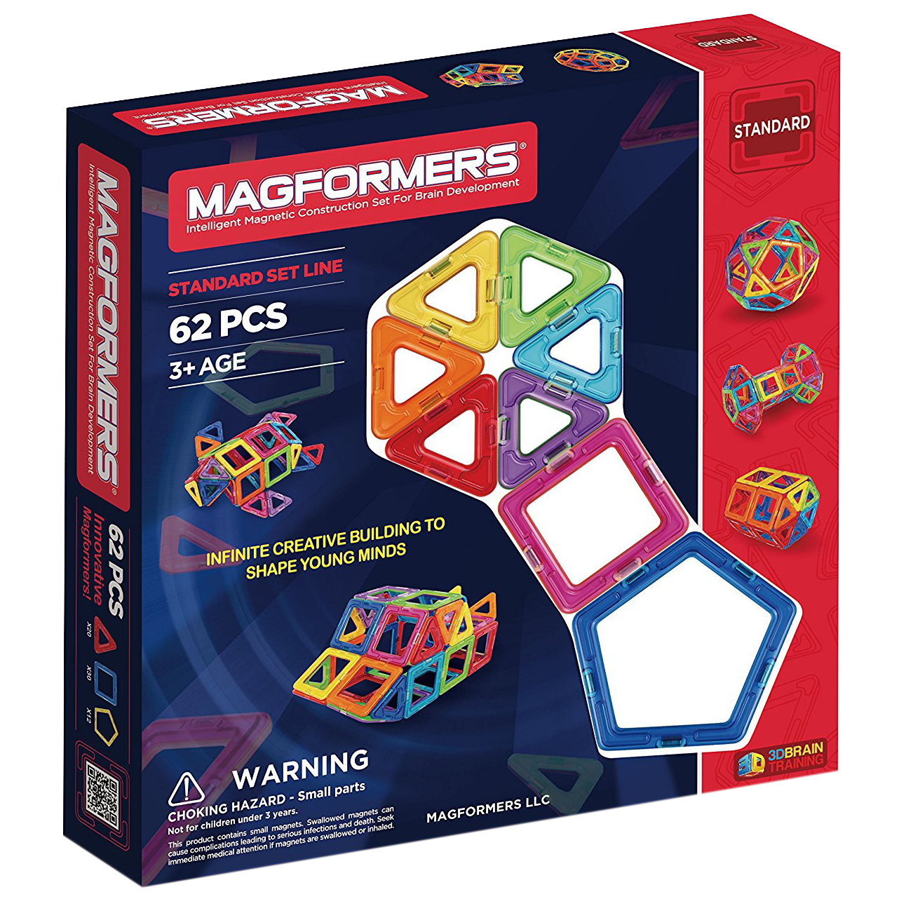 Specs ==== - Model: 63076 - Condition: New - Designed with neodymium rare-earth magnets that ensure connectivity every time you play or build - Compatible with all Magformers shapes and accessories - BPA Free HQABS plastic and Neodymium magnets conform to CE, ASTM, and EN71 - ABS plastic magnets conform to CE, ASTM, and EN71 What’s in the Box? ==== 30x Squares 20x Triangles 12x Pentagons Images ==== Two Kids PlayingMagformersStarHouseNo IdeaSome Shape Price Comparison ==== $52.94 at Amazon