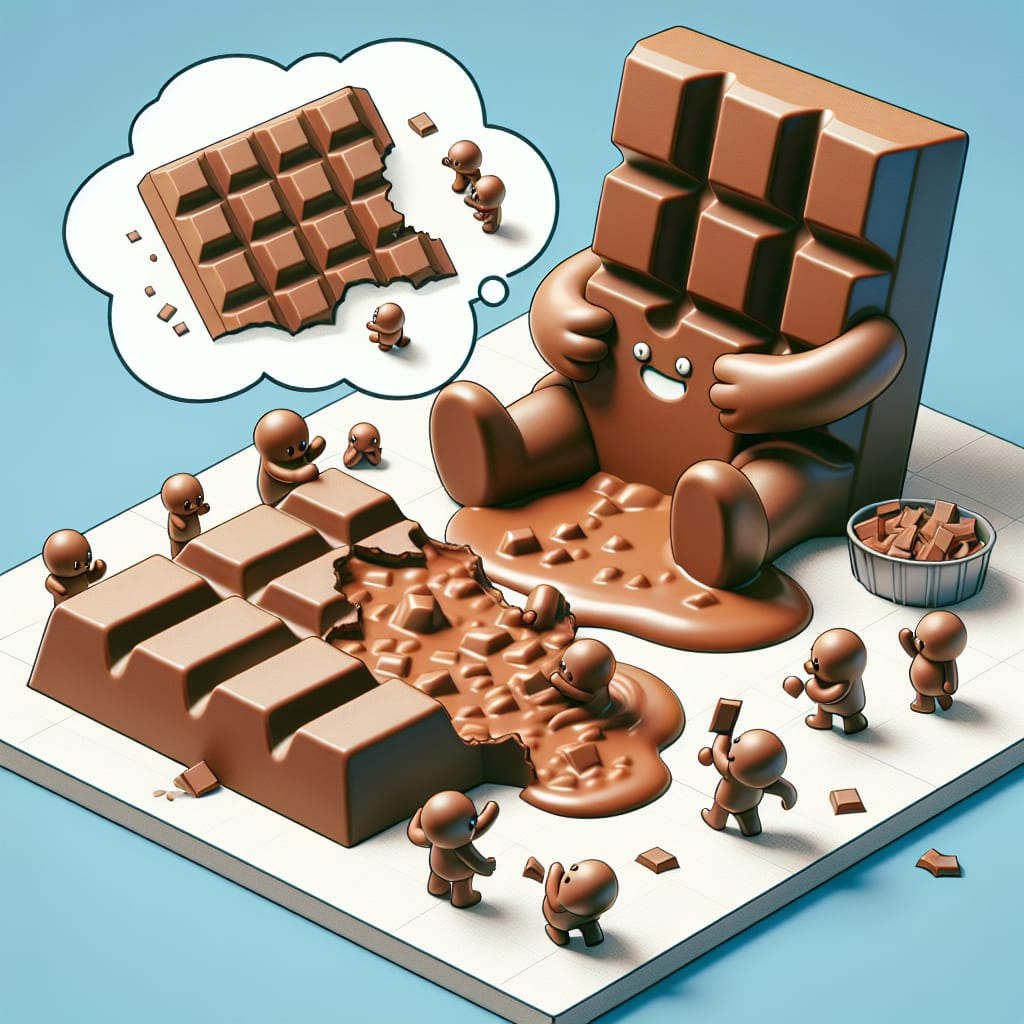 /showme a chocolate-bar in a chocolate bar eating other chocolate-bars. Yes, they eat each other in a fun scene. Include bite marks and teeth