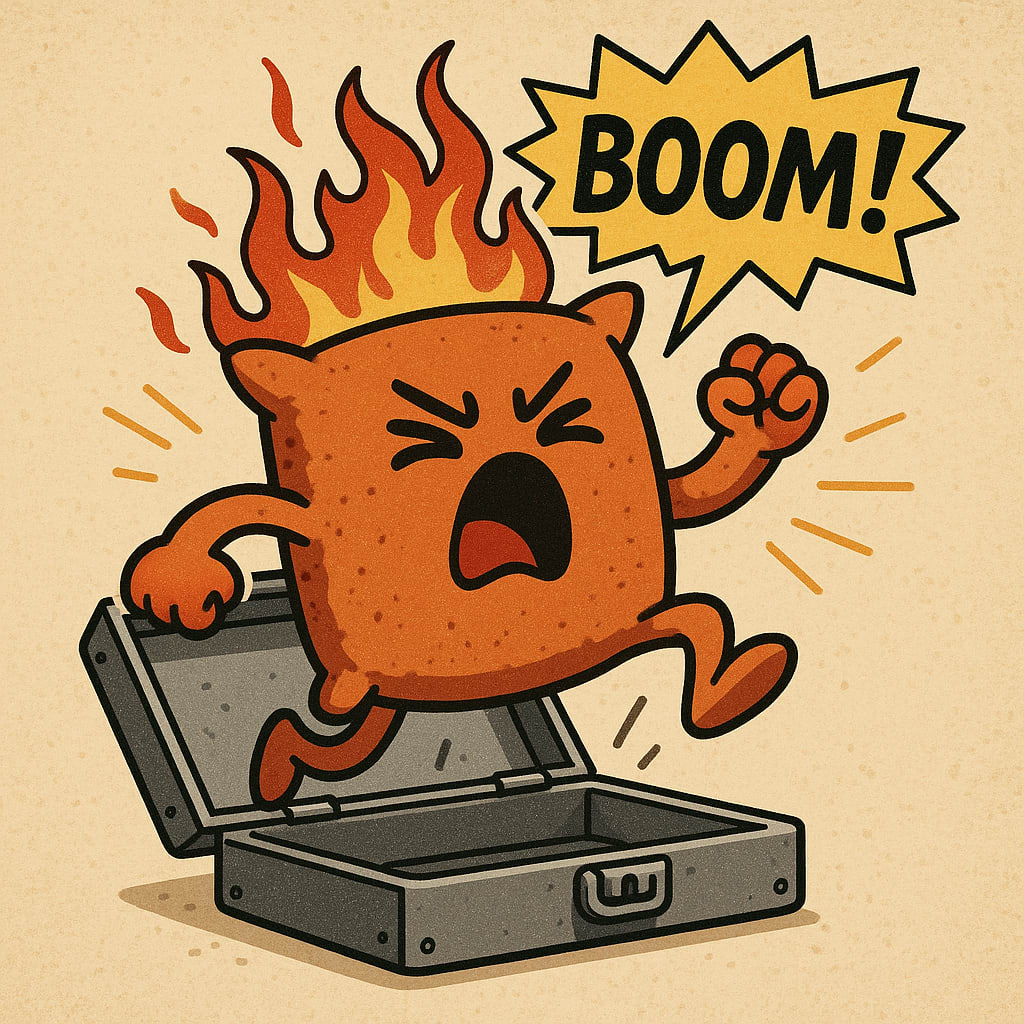 /showme spicy pillow jumping out of metal case and yelling BOOM!