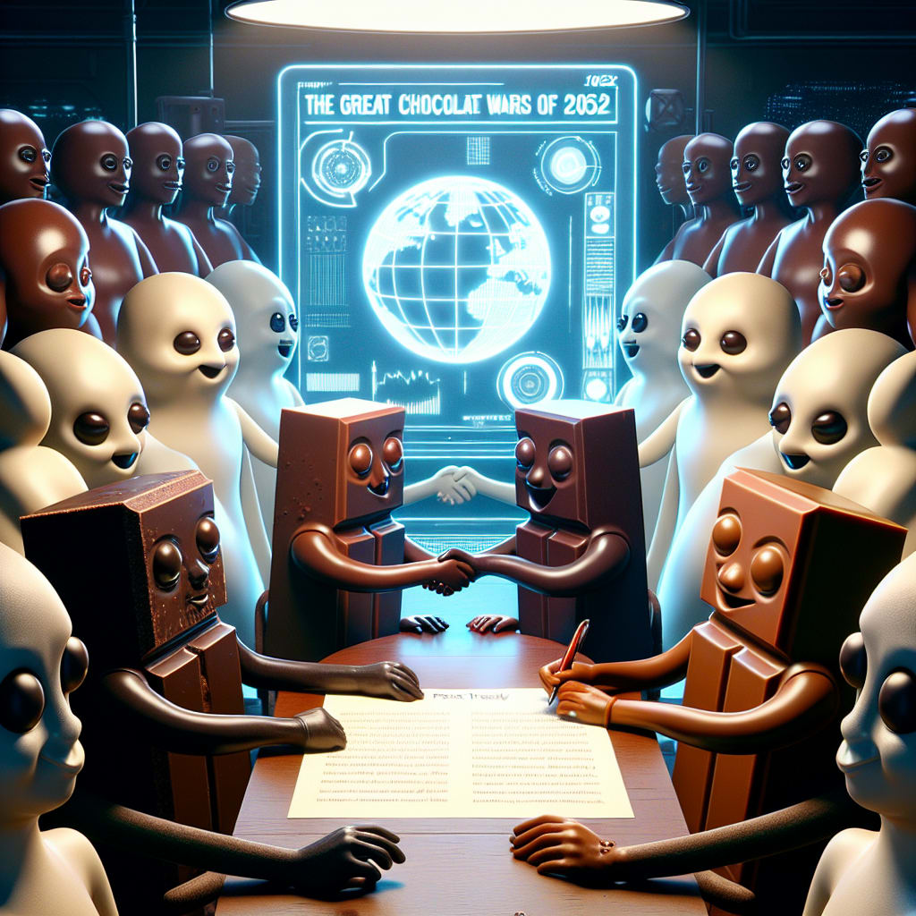 /showme dark and milk chocolate signing a peace treaty after the great chocolate wars of 2052