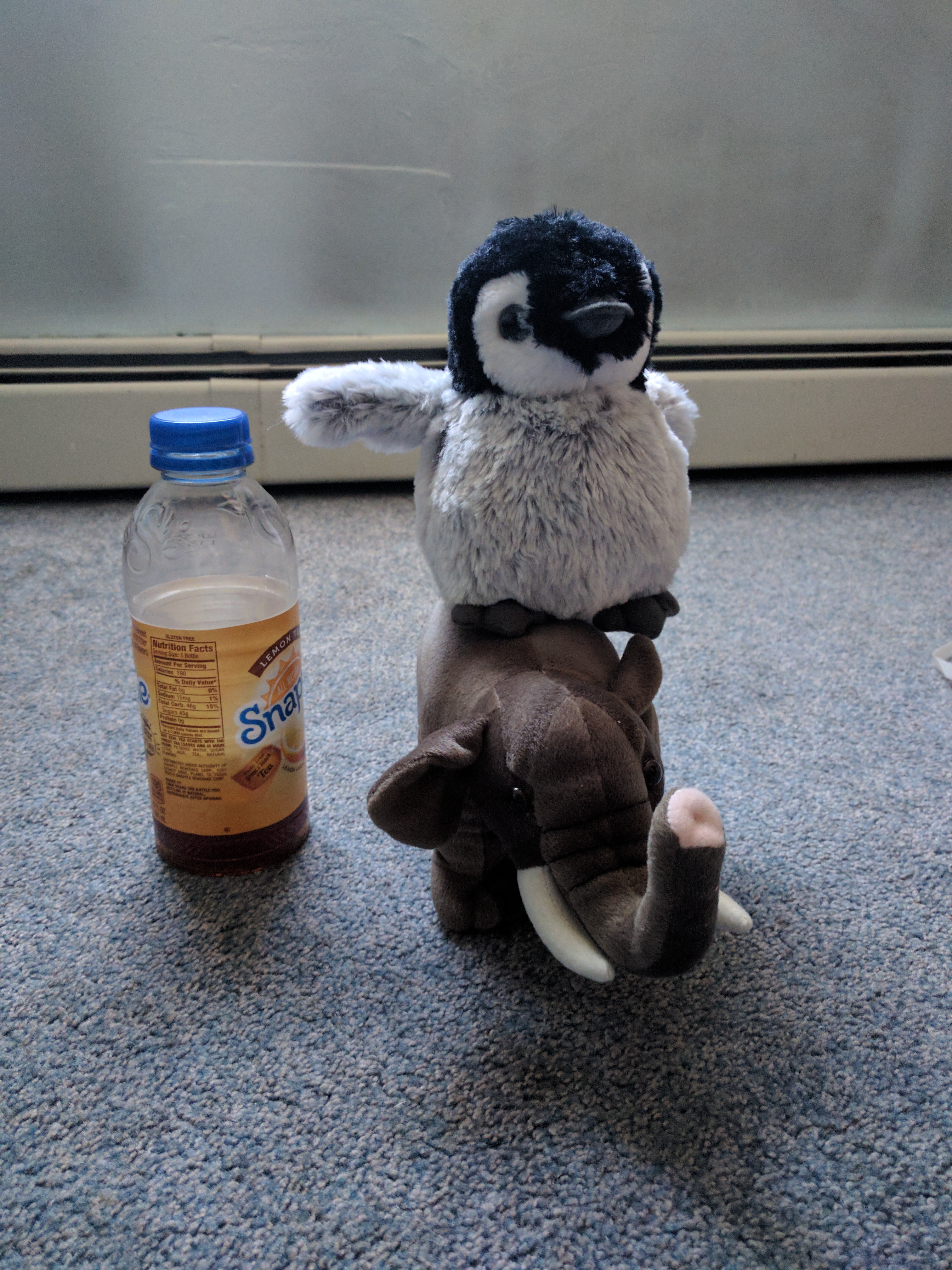 Anyways, I now have an elephant. (Snapple bottle is for scale.)