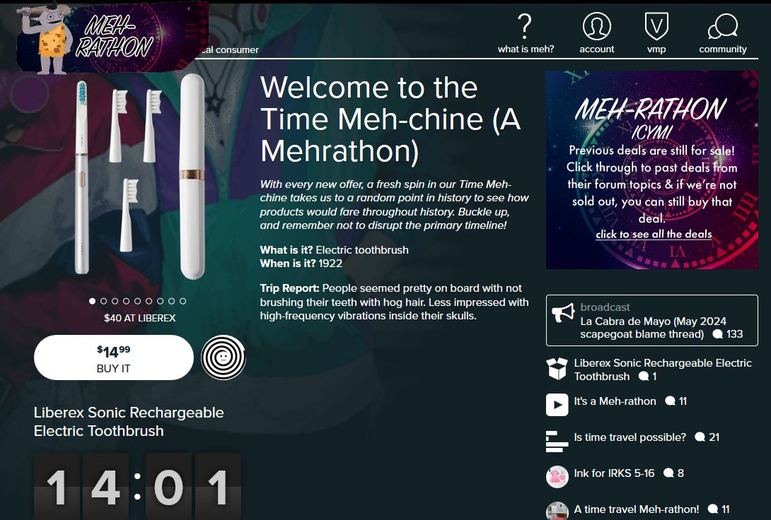 Is it just me? Or is time-travel Meh-rathon linking back in time to pre-Meh-rathon deals?