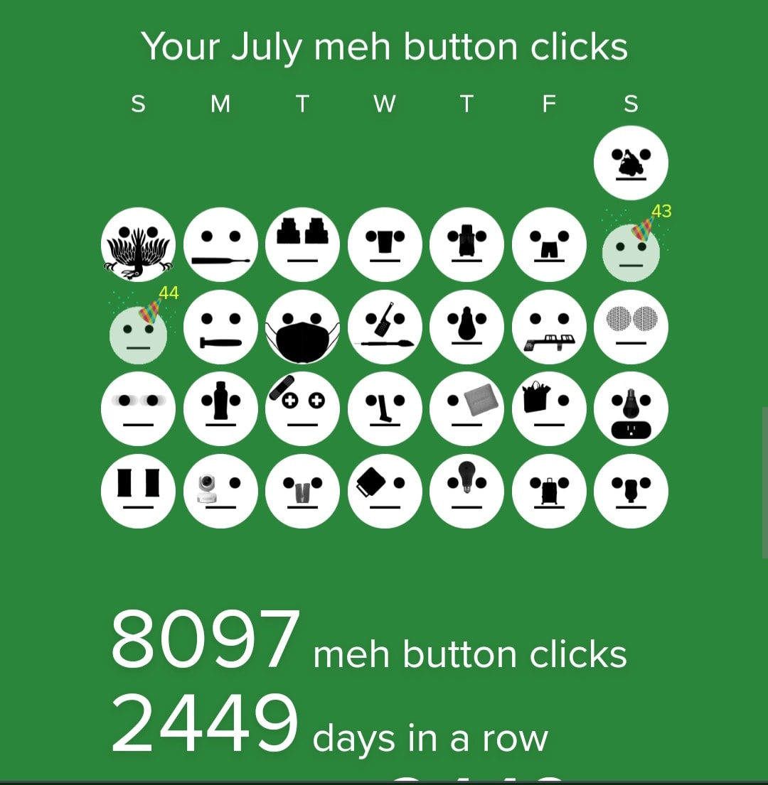 Am I still unreasonably proud/ashamed of myself for making it to a year of continuous Meh button presses?