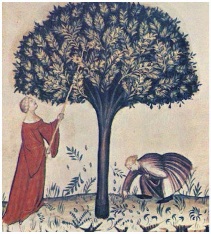 No, nut milk was not invented by Starbucks to annoy your crabbiest uncle. Almond milk is an ingredient in medieval cookbooks from Iceland to Iran, including the oldest known cookbook in the English language, The Forme of Cury, compiled around 1390. It was used in both sweet and savoury recipes, sometimes interchangeably with cow’s milk, sometimes as an egg substitute. After arriving from the Middle East, almond milk became so widely used in medieval Europe, the food history site Seconds calls it an “obsession”.