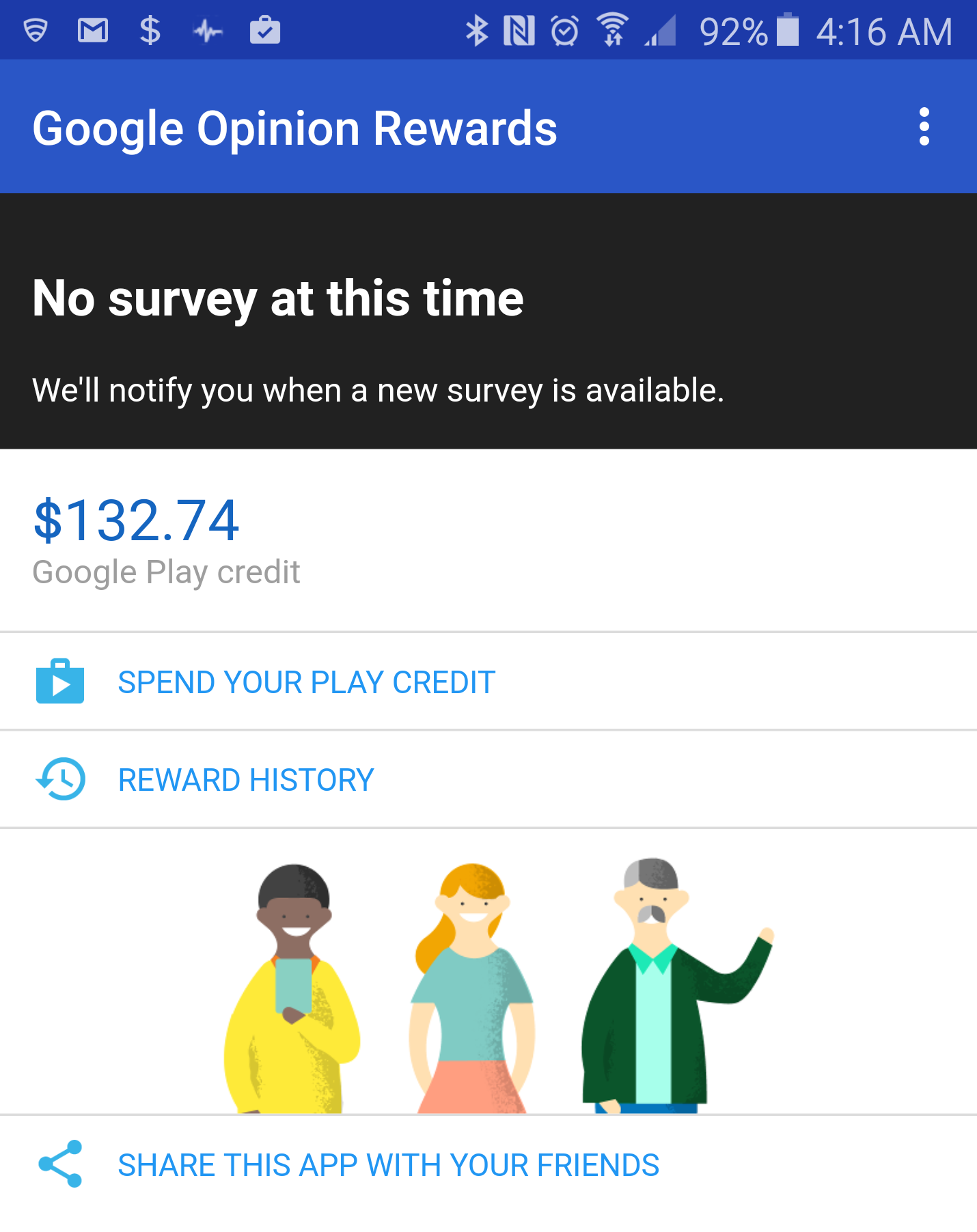 @cengland0 @placidpenguin I found that it really depends on where you live. When I first got the app in atlanta I was being asked questions every 20 minutes and gained $20 or so in that week. Once I went home to Idaho I get maybe a survey or two a week. That includes driving 500-1000 miles a week to different cities and work sites.