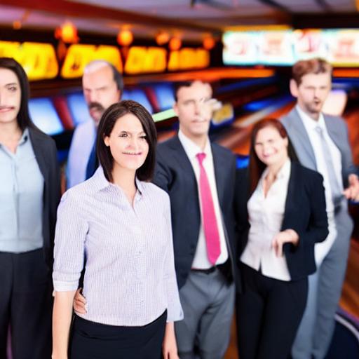 /showme a group of business people looking indifferent at the loss of revenue, in a bowling alley