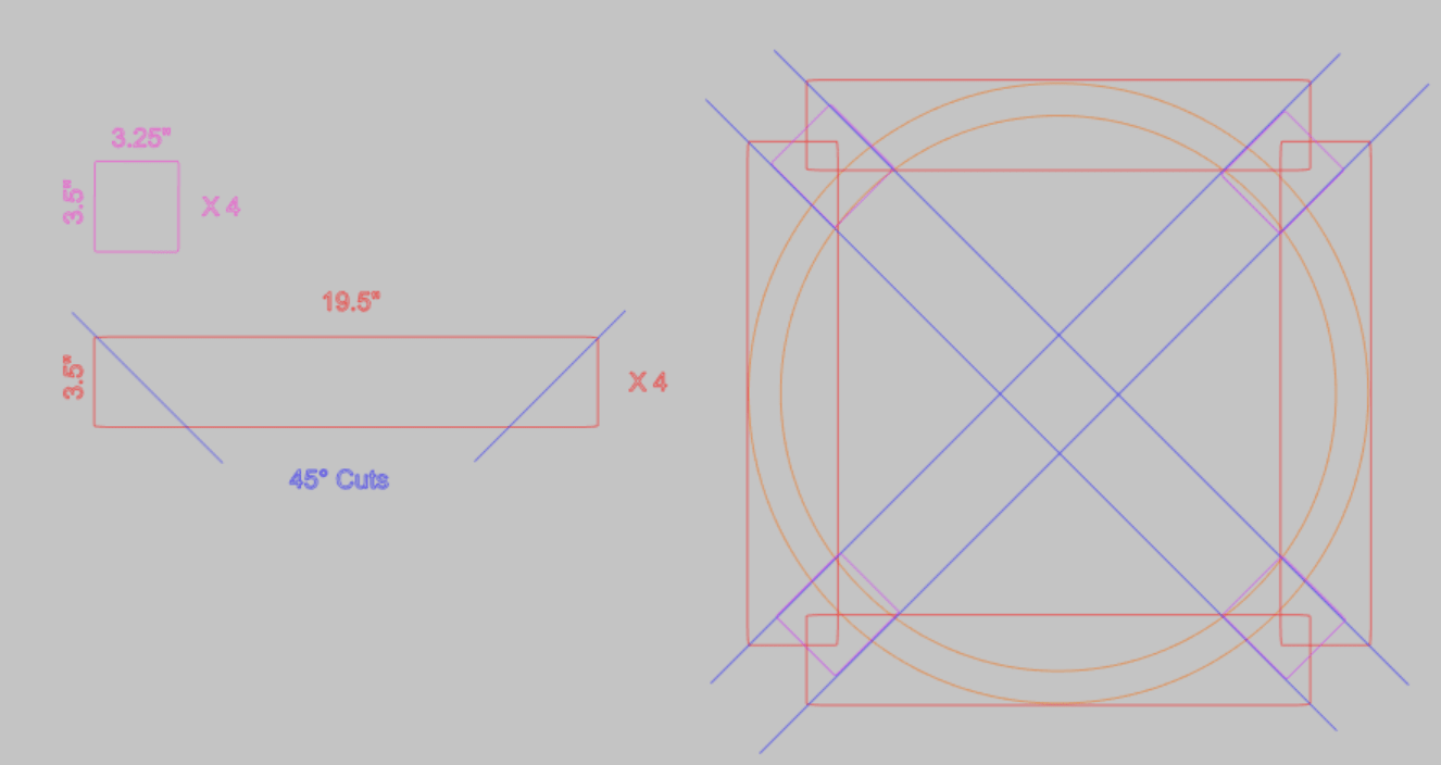 @mschuette So if I follow what you have, if he makes each piece 17 1/2" to 17 3/4" on the long side, with a 36 degree cut off off square,he should still be able to get the inner and outer dimensions out of those pentagons with a bit of play to spare, correct?