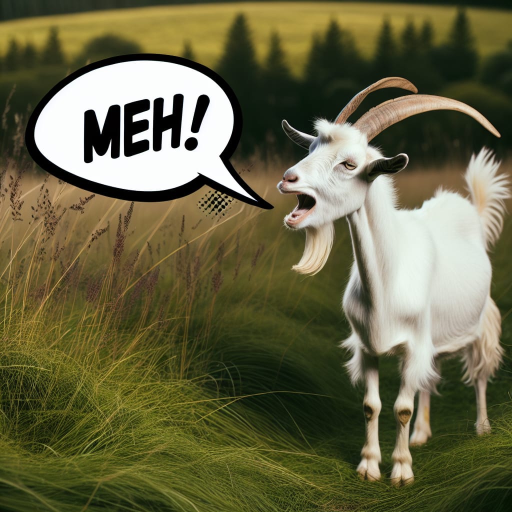 Personally, I’ll stick with the Wiktionary assessment. It even agrees that it was found in that 1928 dictionary. Whether it originally was a goat bleat or not, I don’t really care (though Meh’s association with goats does make that fairly nice).