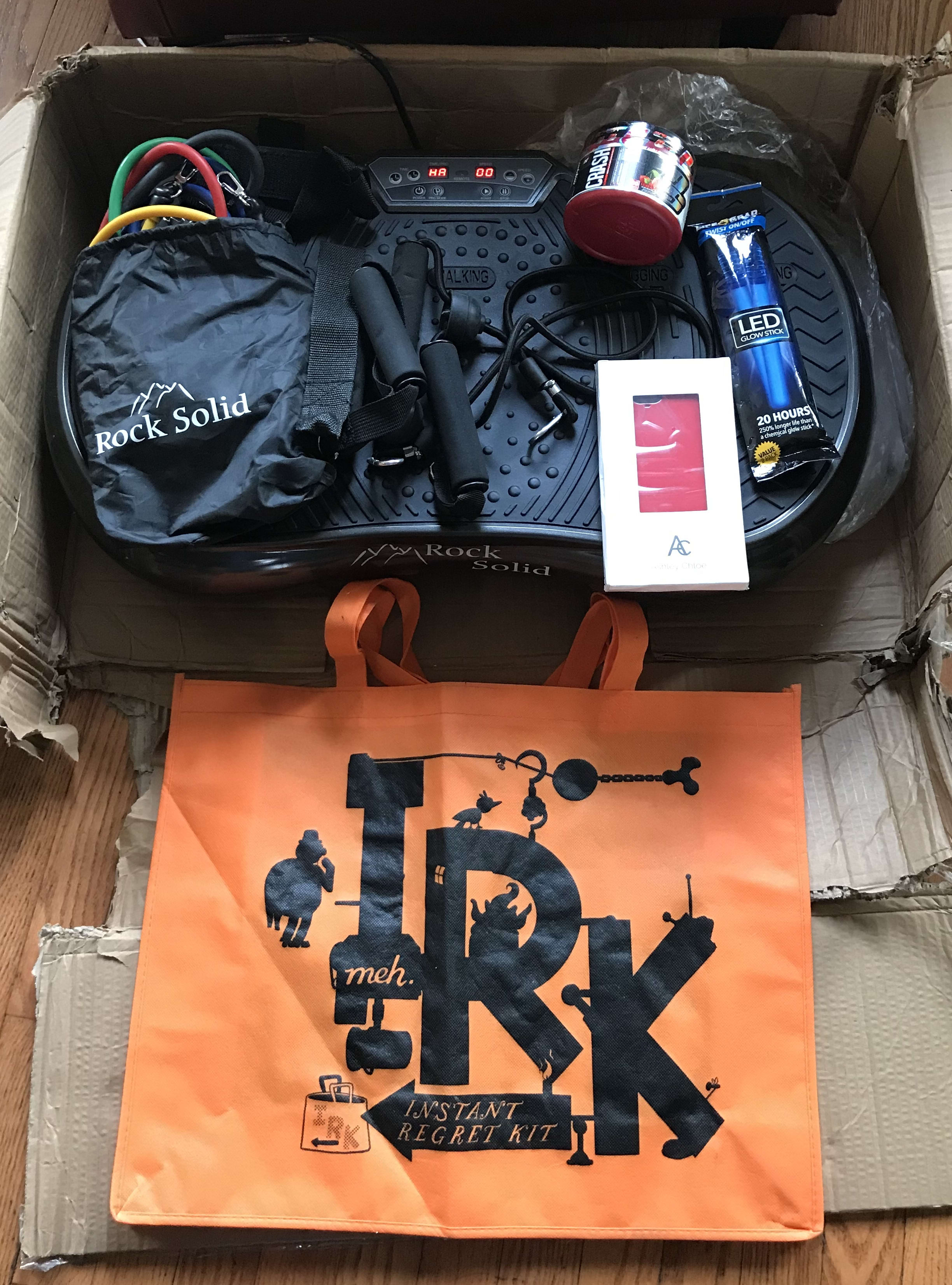 A drunk puppet packed the box. The exercise board crushed all the other items in the box. Adding insult to injury, the packing peanuts got inside the machine so I can’t even test if the machine works yet. The other stuff is decent so thanks?