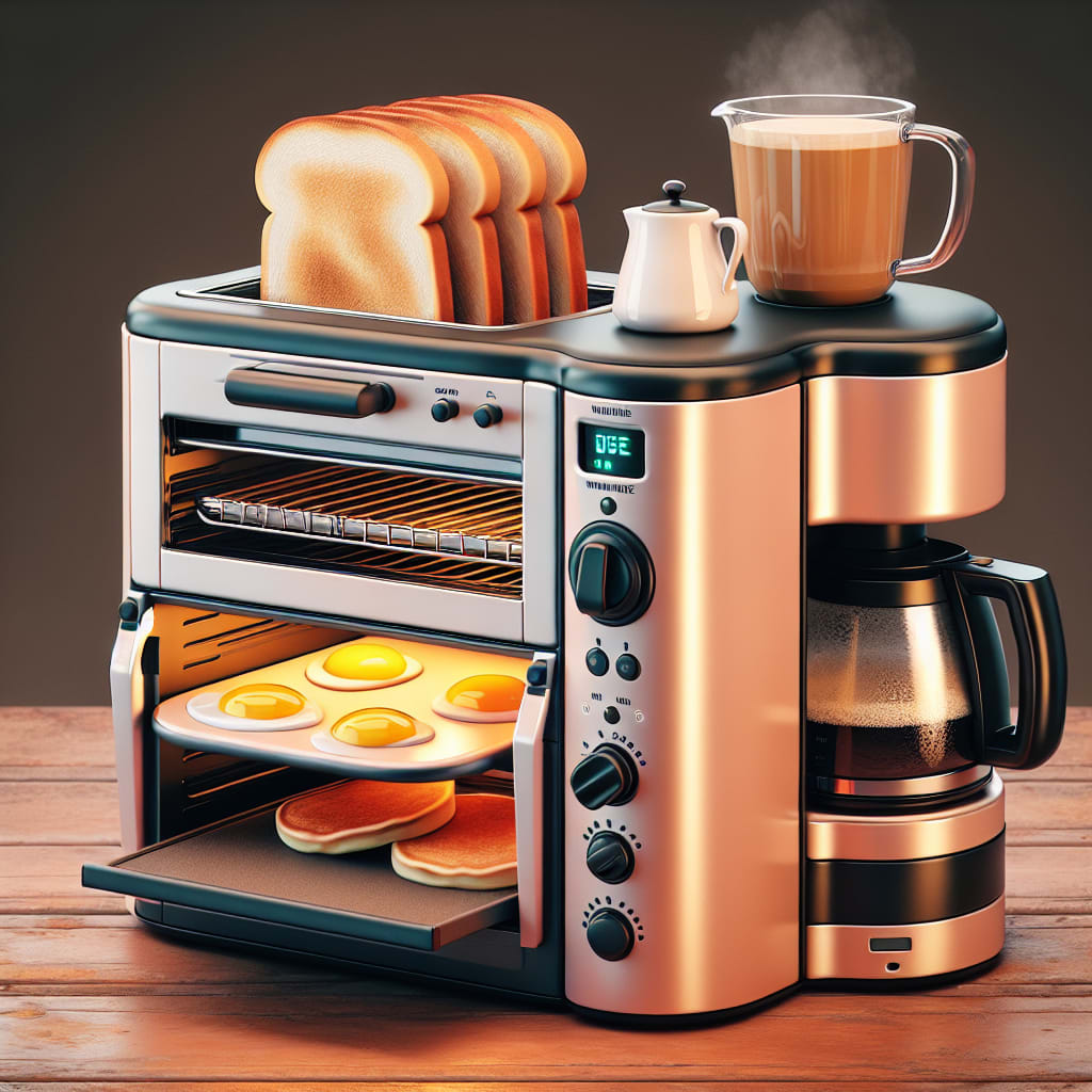 This compact device combines a toaster oven, coffee maker, and griddle, allowing you to prepare a full breakfast simultaneously