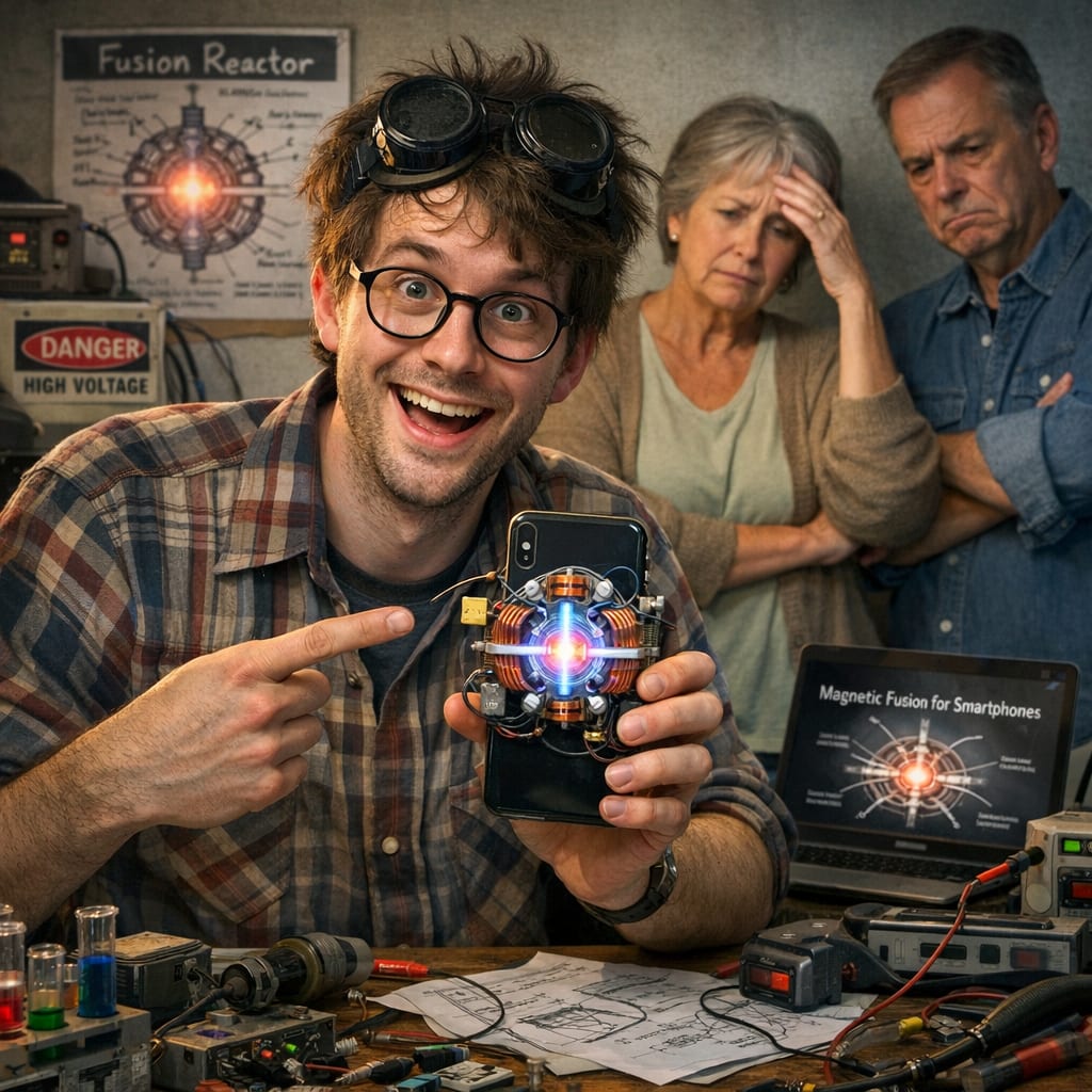 @zippyus Here’s the image you requested for “physics boffin inventing magnetic fusion for smart phones and their parents being extremely disap…”