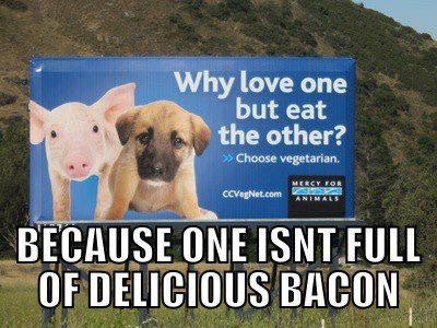 @rand3y lol at the “why love one and eat the other?” billboard. Such silly and small-minded vegetarians. The correct answer is that we can love AND eat BOTH of them.