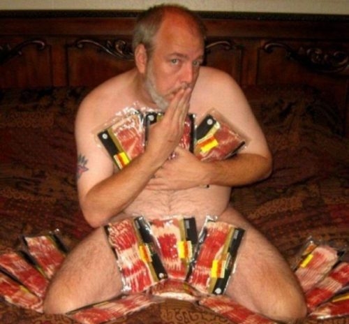 Walked out of our bedroom this morning to see my husband eating bacon with cream cheese on top of it. He said it was bacon & a bagel with a smear minus the bagel. M’okay!