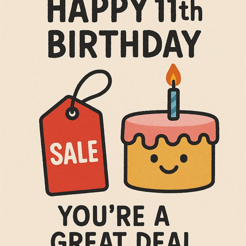 /showme the perfect birthday card for an 11 year old deal-a-day site. It should be ironically funny but also endearing