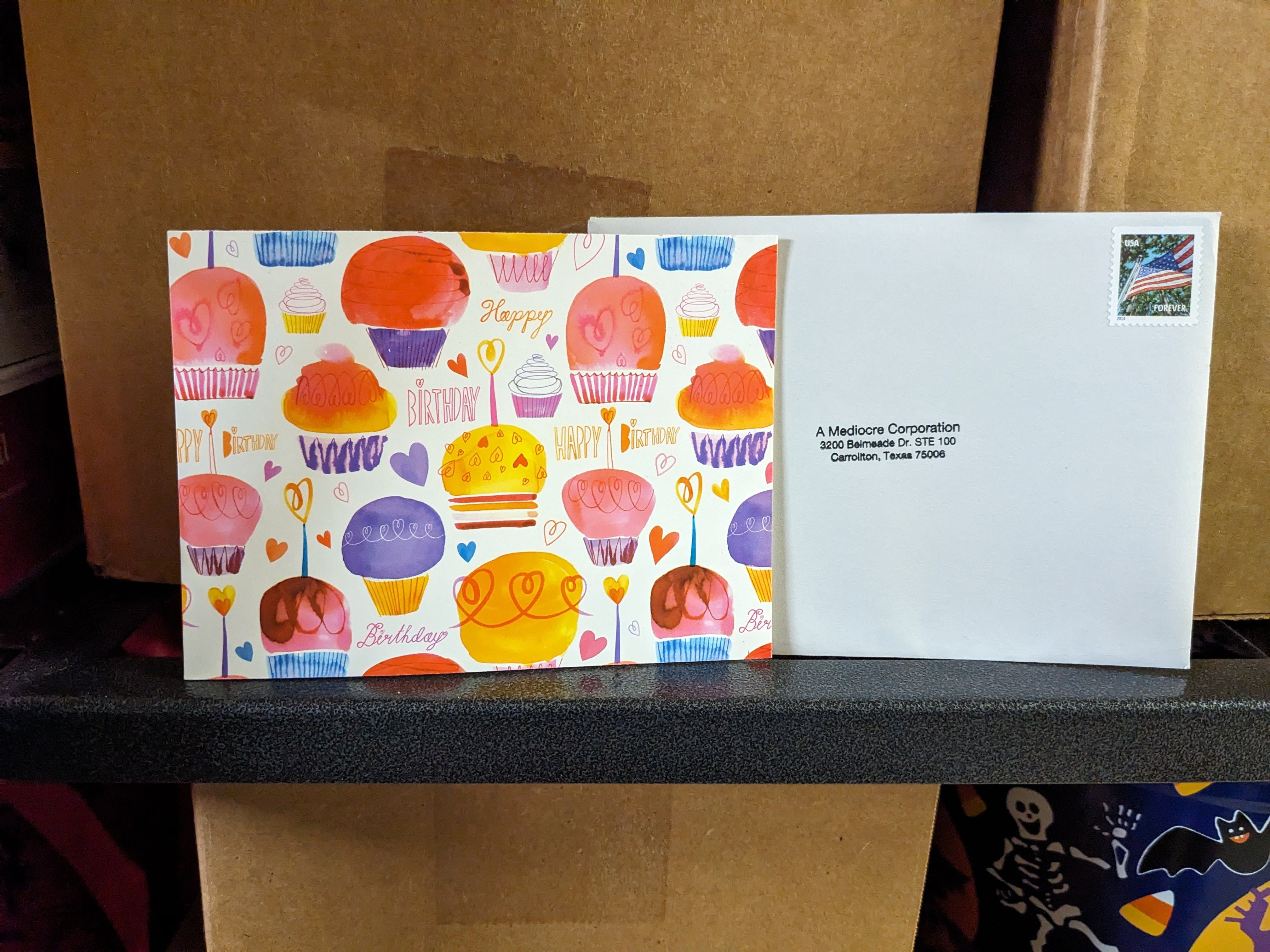 1You know, you can pick up a card at a gas station on the way home from work, but still our mailbox is empty. Let’s see who can use mediocrebot (or maybe some construction paper and scissors) to come up with a proper 11th birthday card before the day is up.