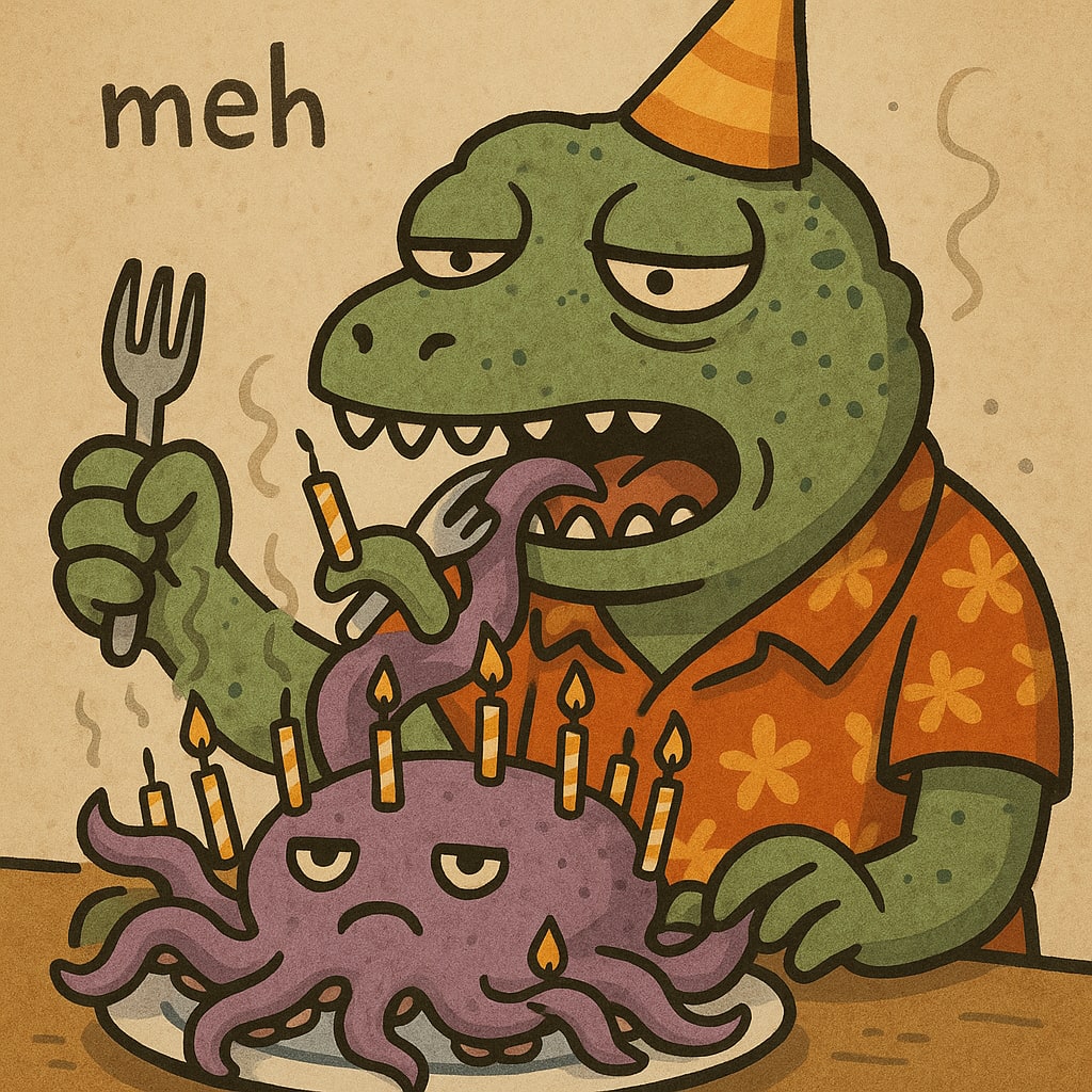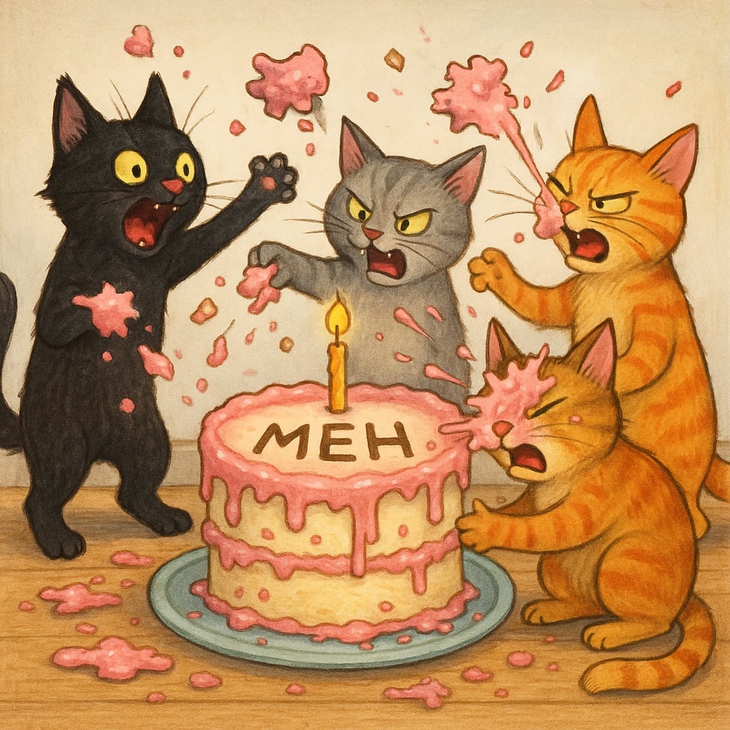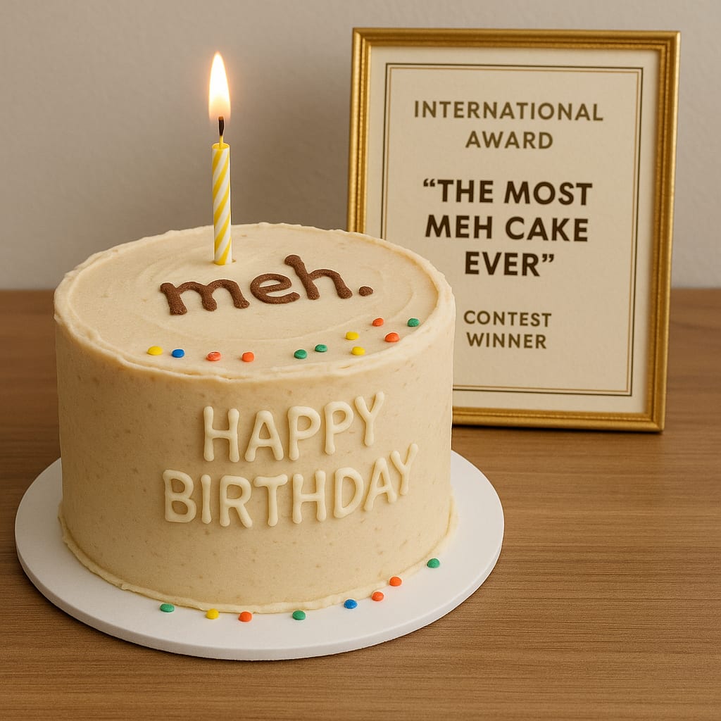 But it feels like this community should be able to come together in the form of a Meh-inspired, AI-generated birthday cake to mark this hallowed occasion.