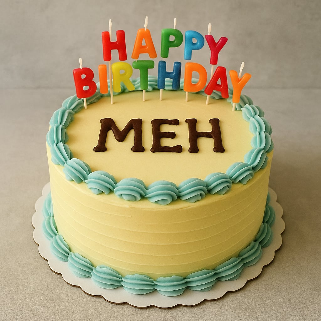 @lonocat @mediocrebot It wouldn’t be “very Meh” if it had the right number of candles, would it?