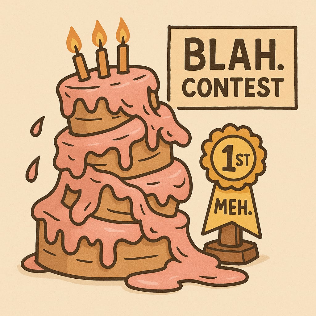/showme a birthday cake that wins international awards from a contest themed “the most meh cake ever”