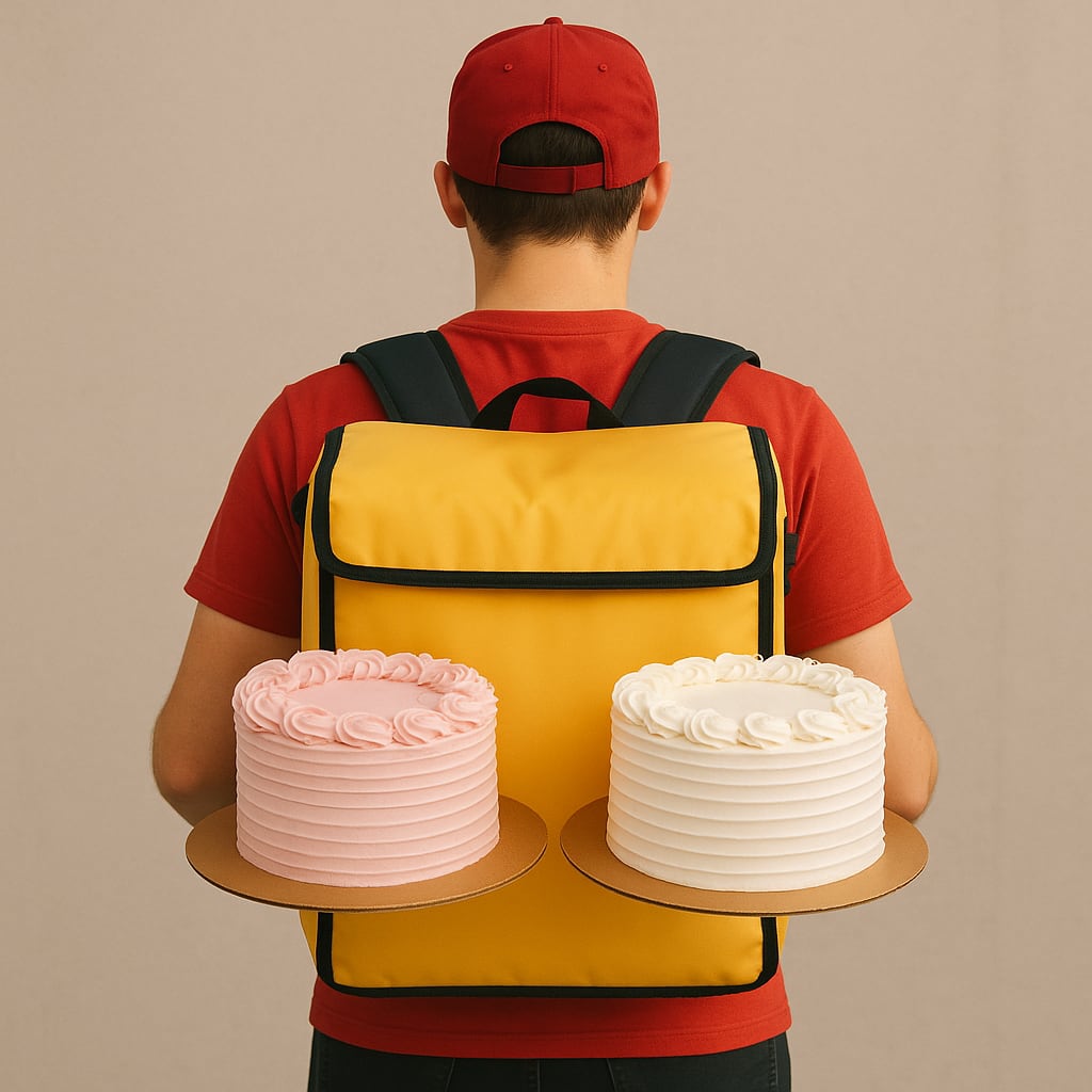 /showme a delivery person as seen from behind with two booty level cakes on their booty