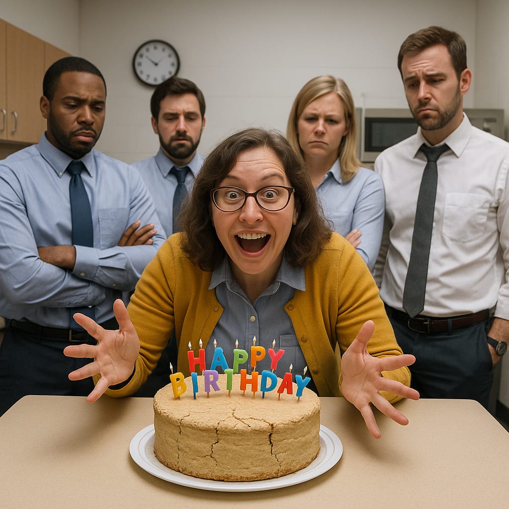 /showme a stale birthday cake in a corporate break room and all the workers are “meh” about it. Nancy from accounting is uncharacteristically excited about the cake.