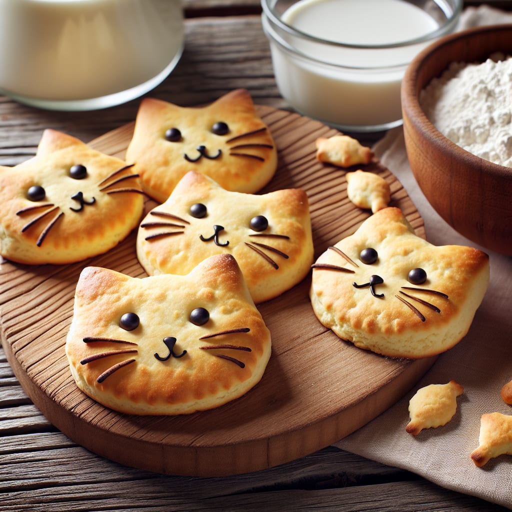 /showme cathead buttermilk biscuits(This is my first time hearing “cathead” as a thing; I assume it’s like “catgut” and doesn’t involve actual cats [anymore]. Apparently they’re larger-than-usual drop biscuits? So these cathead-shaped biscuits the AI made are utterly incorrect.)