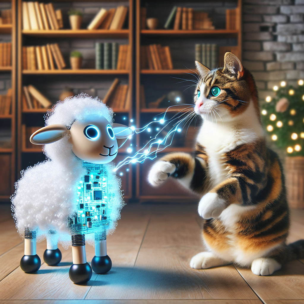 @kuoh @mycya4me I think the sheep is hypnotizing the cat.