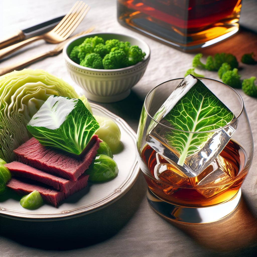 /showme corned beef and cabbage with Bourbon and giant ice cube