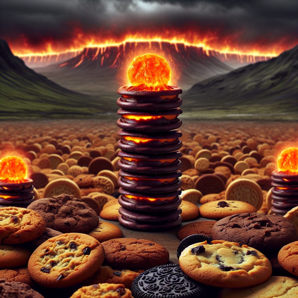 /showme Jaffa cakes destroying all other known cookie types in a fiery apocalypse of Jaffa cake domination