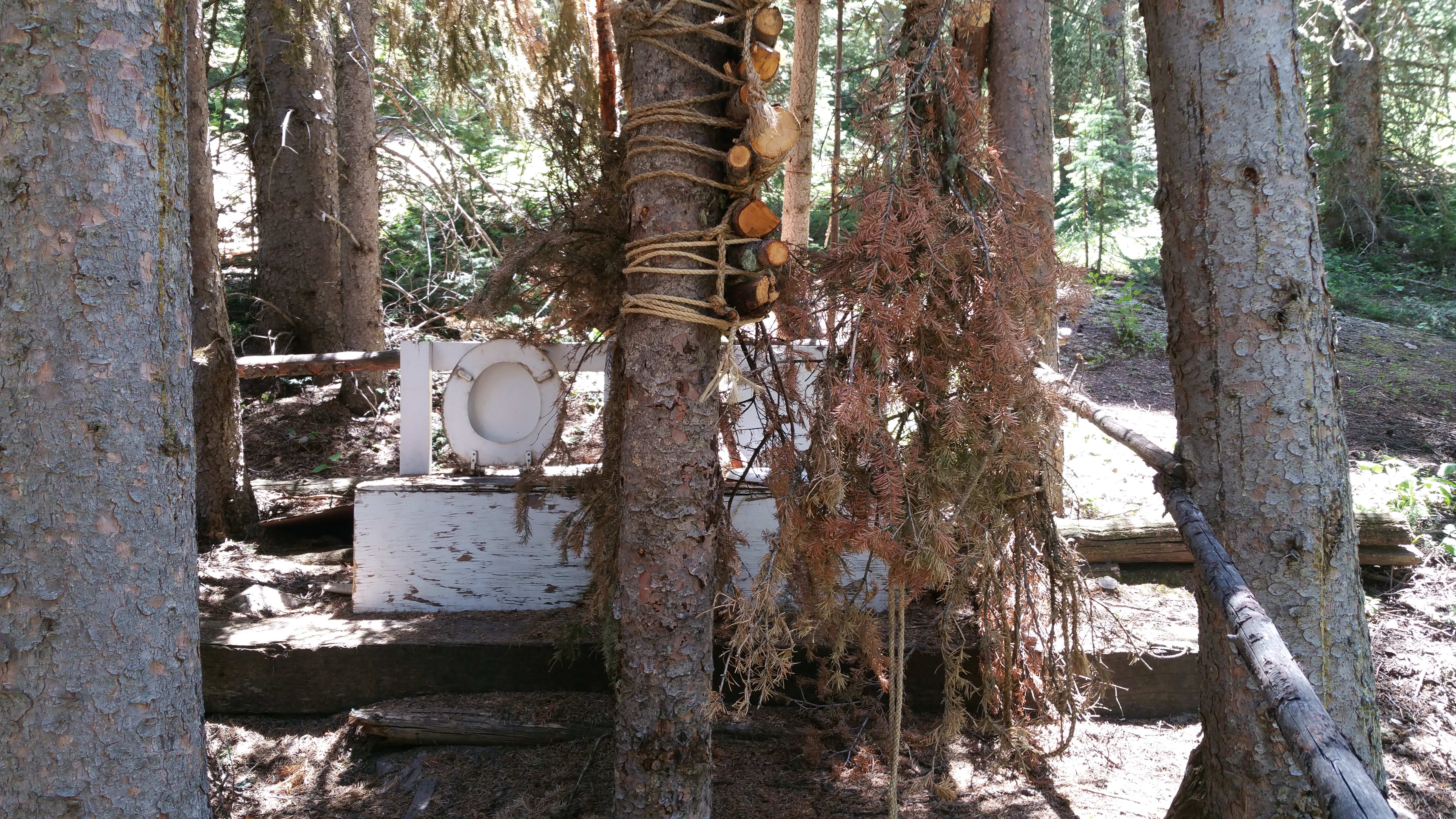 In the toilet. I have toddlers. This is all I ask. I will say the 4 year old needed to go in a port-a-potty a few days ago and that resulted in blue liquid splashed on his bum