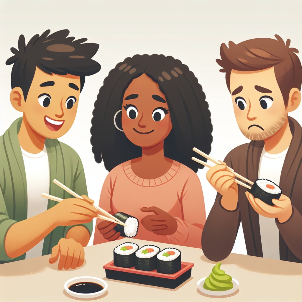 /showme Kyeh, Shahnm and Mehcuda67 on a roll with sushi and wasabi