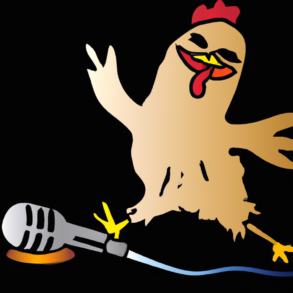 /showme a friendly chicken with a microphone puppet being resurrected from the dead