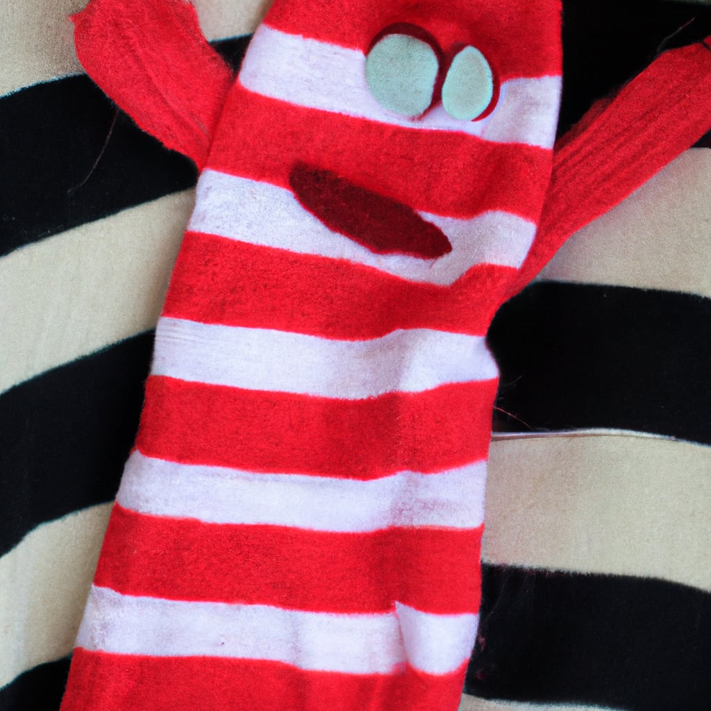 /showme a friendly red and white striped sock puppet being resurrected from the dead.