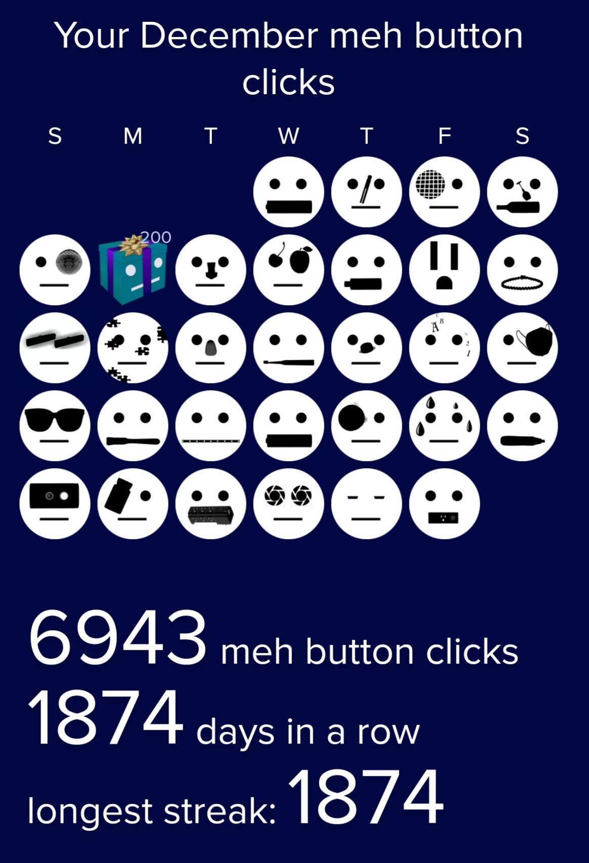 My lifetime streak is 638. My daughter is currently in an event where you have to log in to a website every day or you’re out. Last person in wins money. When I shared with her that I checked meh every day for 638 straight days for no more reward than the hope of there being something not crappy to spend money on…she was, well, first disappointed at how ridiculous I am but then very curious to see how long this contest might actually last. Years easily, I suspect. Got me wondering the longest Meh streak out there…