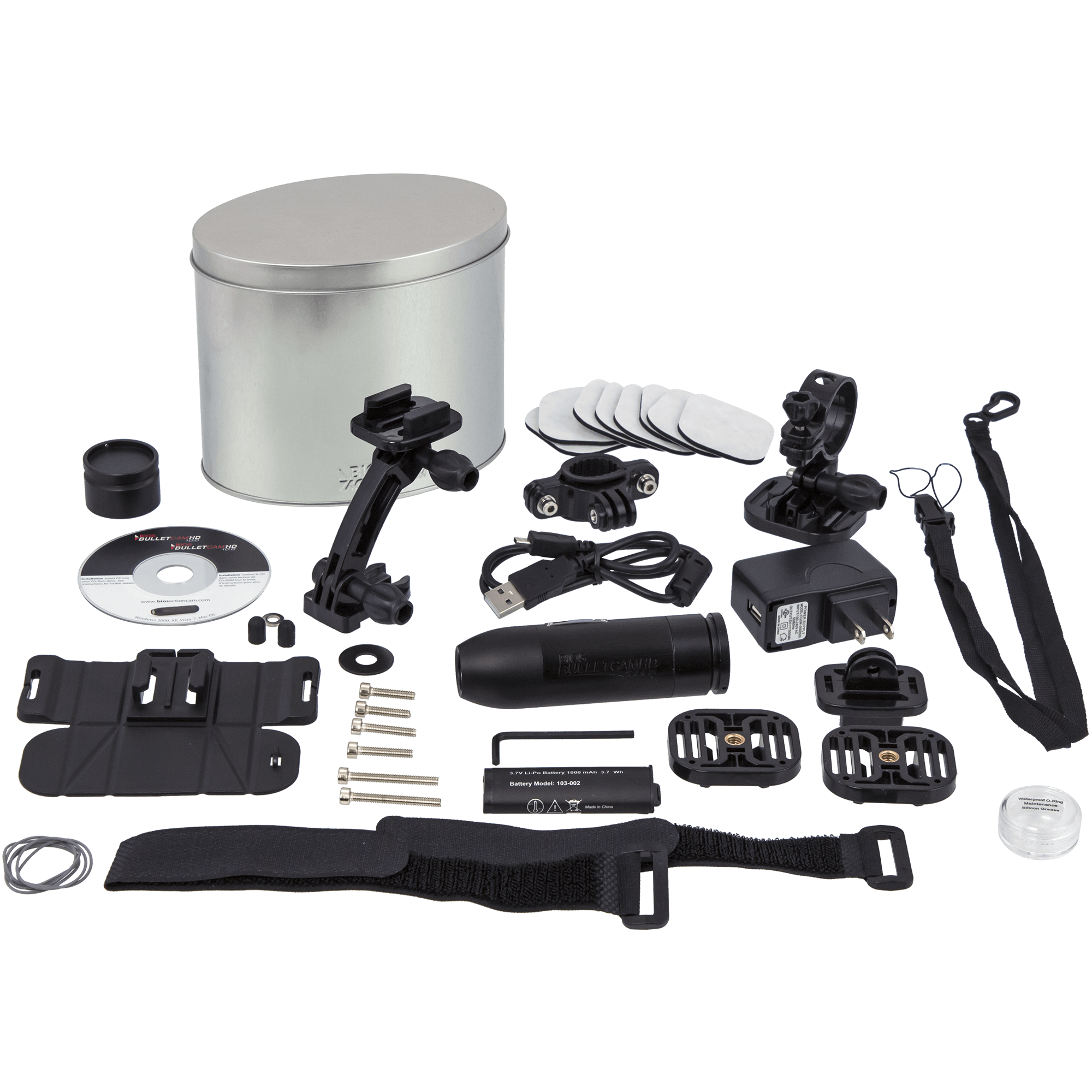Specs ====- Model: 625fc- Condition: New - Bullet-shaped- Lightweight at just 104 grams- 1080p Full HD video at 30fps- 720p HD at 60fps- Fisheye at 1080p- 145 lens- Durable aluminum housing- Motion Stabilization Technology- Mounting capabilities- Waterproof up to 10 meters- CMOS sensor- Rechargeable lithium-ion battery- Dimensions: 5.5x4x8.25What’s in the Box? ====1x Camcorder with sound cap 1x Camcorder 360 mount adapter 3x Universal mount 8x Adhesive mount 1x Roll Bar mount 1x Pad mount 1x Rotating kit 1x Hand safety strap 1x Waterproof kit 1x rechargeable Lithium-ion battery 1x USB cable 2x Velcro straps Pictures====PackagingCameraStuffed insideEverythingBulletBack removedPrice Comparison====$93.10 at Amazon