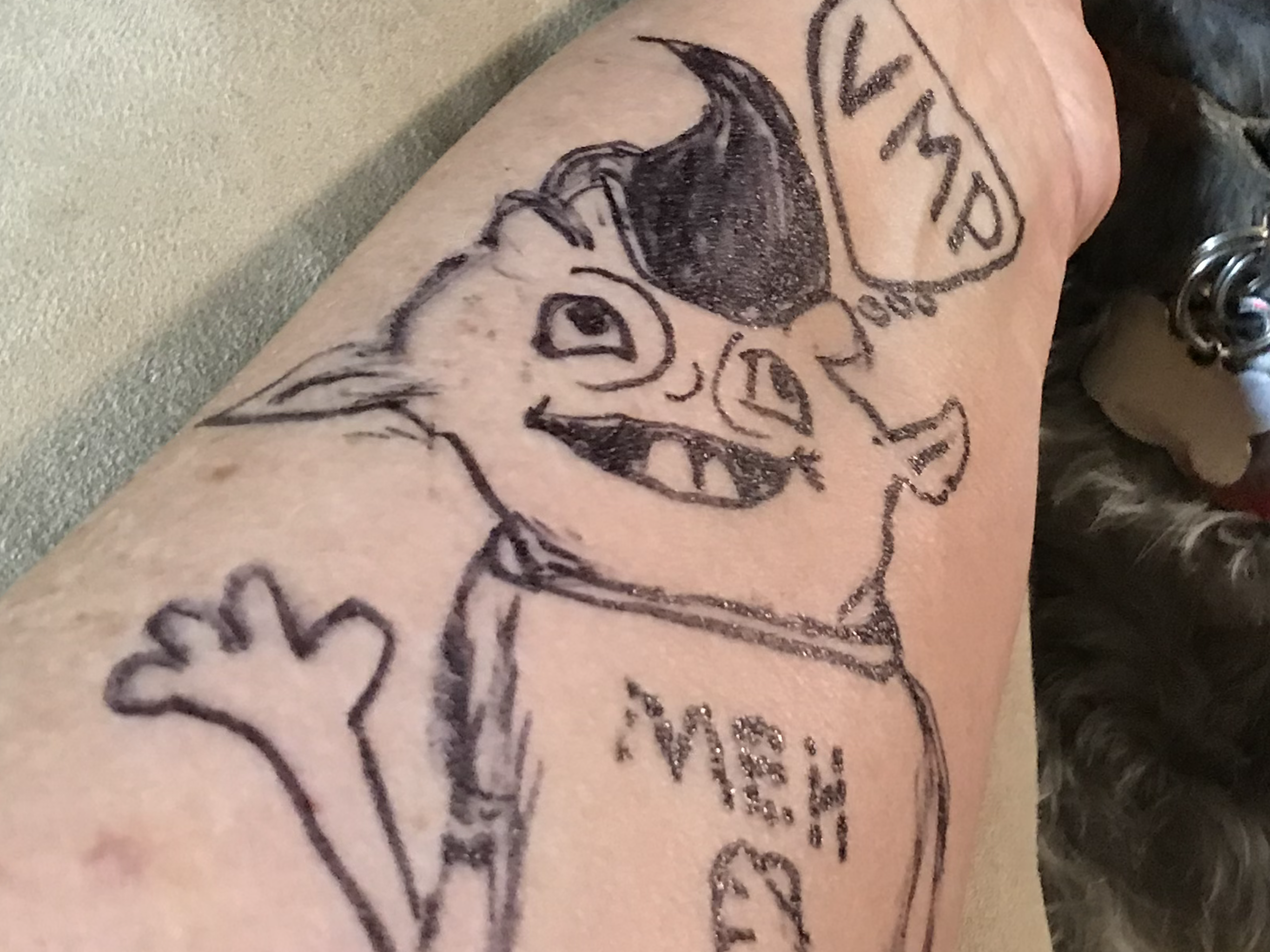 Use a Sharpie and draw your best hand-drawn Meh Tattoo on your body…errrr…arm….let’s go arm. Points for originality, bonus points for quality.