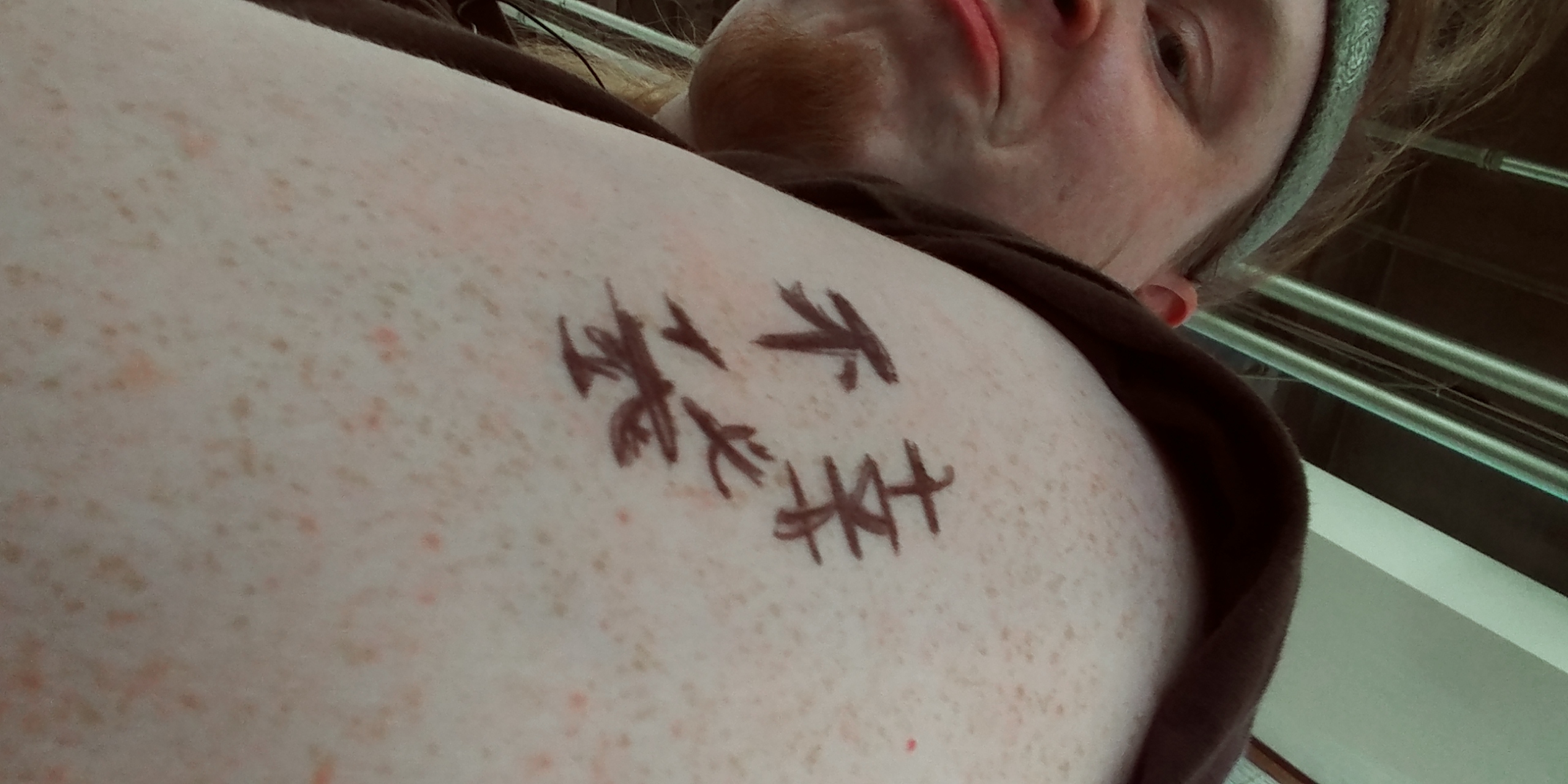 @mikibell Ha! I’ve discovered that purple Sharpie ink does not come off. I wonder how long it will take for the skin to regrow?