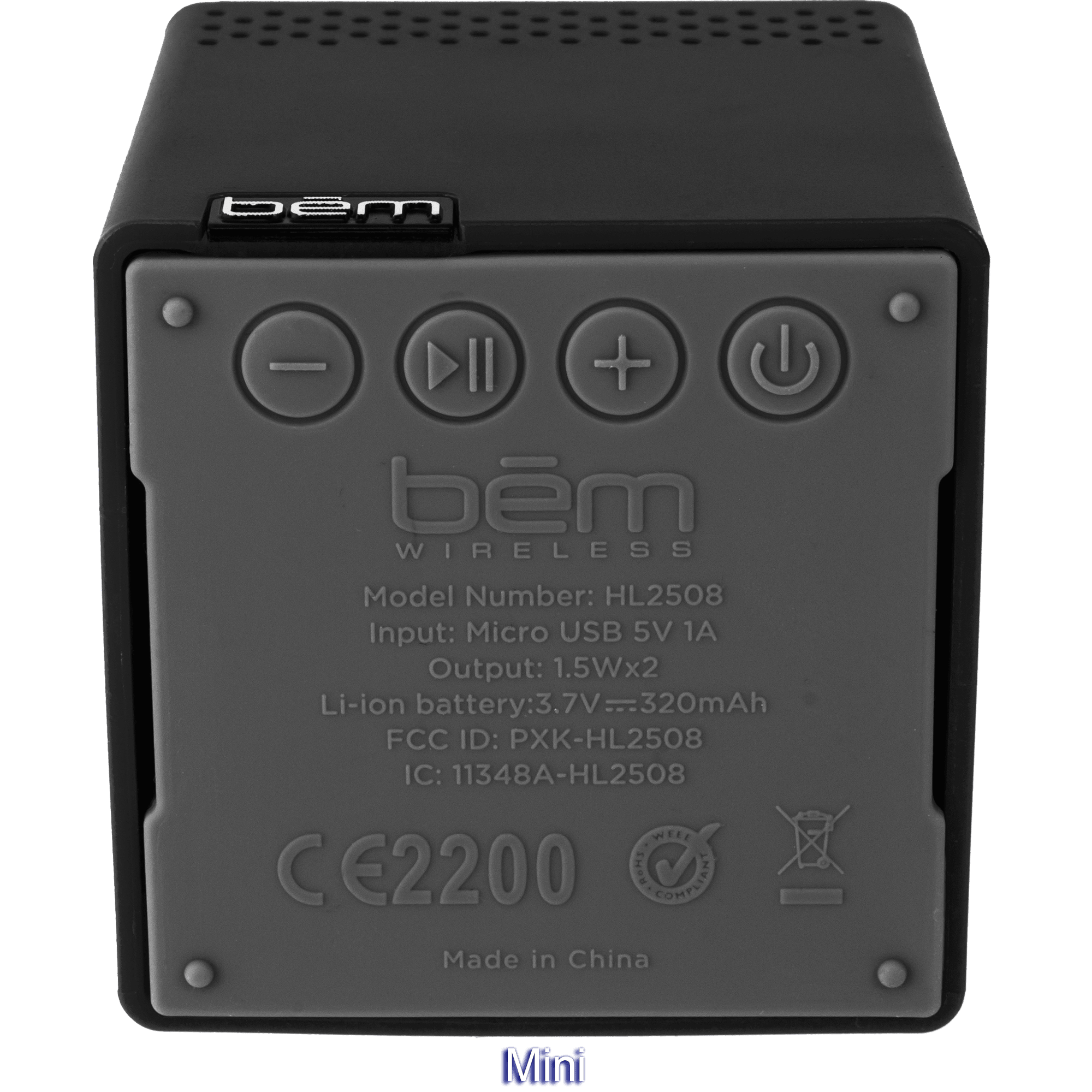 Specs ====- Model: HL2022- Condition: New- Not-mini: - Model: HL2022 - Condition: New - Bluetooth with auto pairing - Approx. 40 ft. of working range - Built-in Li-ion rechargeable battery (6-8 hrs) 3.7V,600mAh - Aux. in & out (3.5mm) and Micro USB port - Includes 5V/1A USB Power Adaptor - Power (RMS): 1.5W x 2 - Soft touch finish - Product Dimensions: L 2.5 x H 2.5 x D 2.5 - Item Weight: .6lb- Mini: - Model: HL2508B - Condition: New - Frequency response: 100Hz-16000KHz - Bluetooth V2.0+EDR, profile, A2DP, AVRCP - Approx. 40 ft. of working range - Built-in Li-ion rechargeable battery (6-8 hrs) 3.7V,320mAh - Aux. in (3.5mm) and Micro USB port - Includes 5V/1A USB Power Adaptor - Power (RMS): 1W x 2 - Soft touch finish - Product Dimensions: L 2.25 x H 2.25 x D 2.25 - Item Weight: .4lbWhat’s in the Box? ====1x Speaker1x USB charging cable1x 3.5mm AUX cablePictures====OptionsNot miniMiniIncluded with MiniDetail of MiniNot mini back viewMini controlsPrice Comparison====Mini: $26.33 at AmazonNot-Mini: $28.99 at AmazonFind a relevant price comparison? Please share it in a comment in this thread
