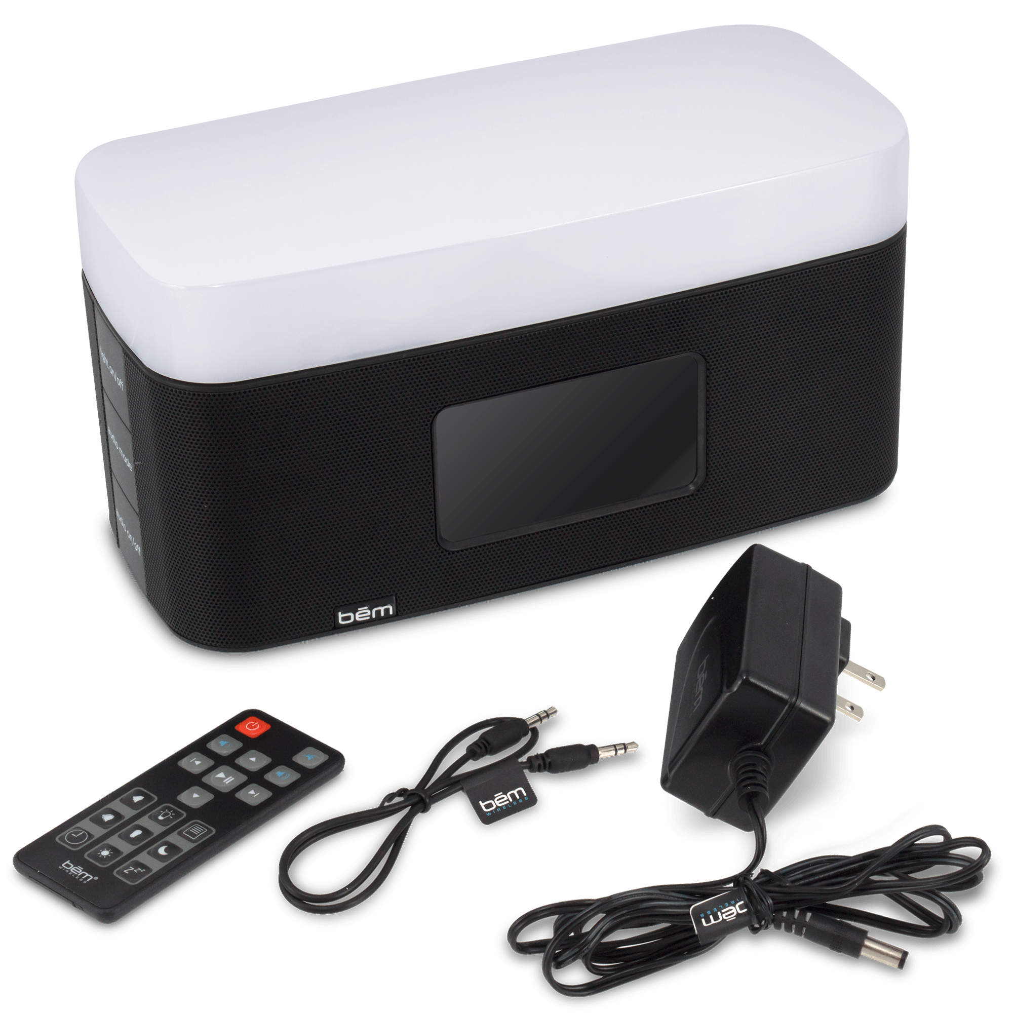 Specs ====- Model: HL2501- 6 built-in nature sounds (Birds, Rain, Ocean, Wind, Stream, and Trees (aka different wind))- Remote control with volume and music/call controls, alarm and clock controls, LCD brightness, LED controls, audio mode, and snooze- Buttons on both side of unit for easy access on either side of the bed- “Wake to light” mode gradually turns on the light- Two alarms can wake you with FM radio, nature sounds, or buzzer- FM digital tuner- Built-in mic for speakerphone use- Speakers: 2.1 Stereo (2x 2.75" speakers with passive units)- 2x USB power ports for charging devices (5V, 1A)- 1x aux-in port- Bluetooth: V4.0+EDR (A2DP, AVRCP)- Bluetooth range: 25-40ft- Power: 12V, 2A- LED power: 1W- Color temperature: 5200K 300K- User manualCondition: NewWarranty:90 Day BemEstimated Delivery: 8/9 - 8/12Shipping: $5 or free with **VMP**What’s in the Box?====1x Bem Sunrise1x Remote1x 3.5mm Aux cable1x Power cable1x User guidePictures ====GleeeeeeeeeeeenWhiteBlackEverything included3/4 viewOther side of the 3/4 viewBack detail viewPrice Comparison====$89 at Amazon$149.99 ListFind a relevant price comparison? Please share it in a comment in this thread