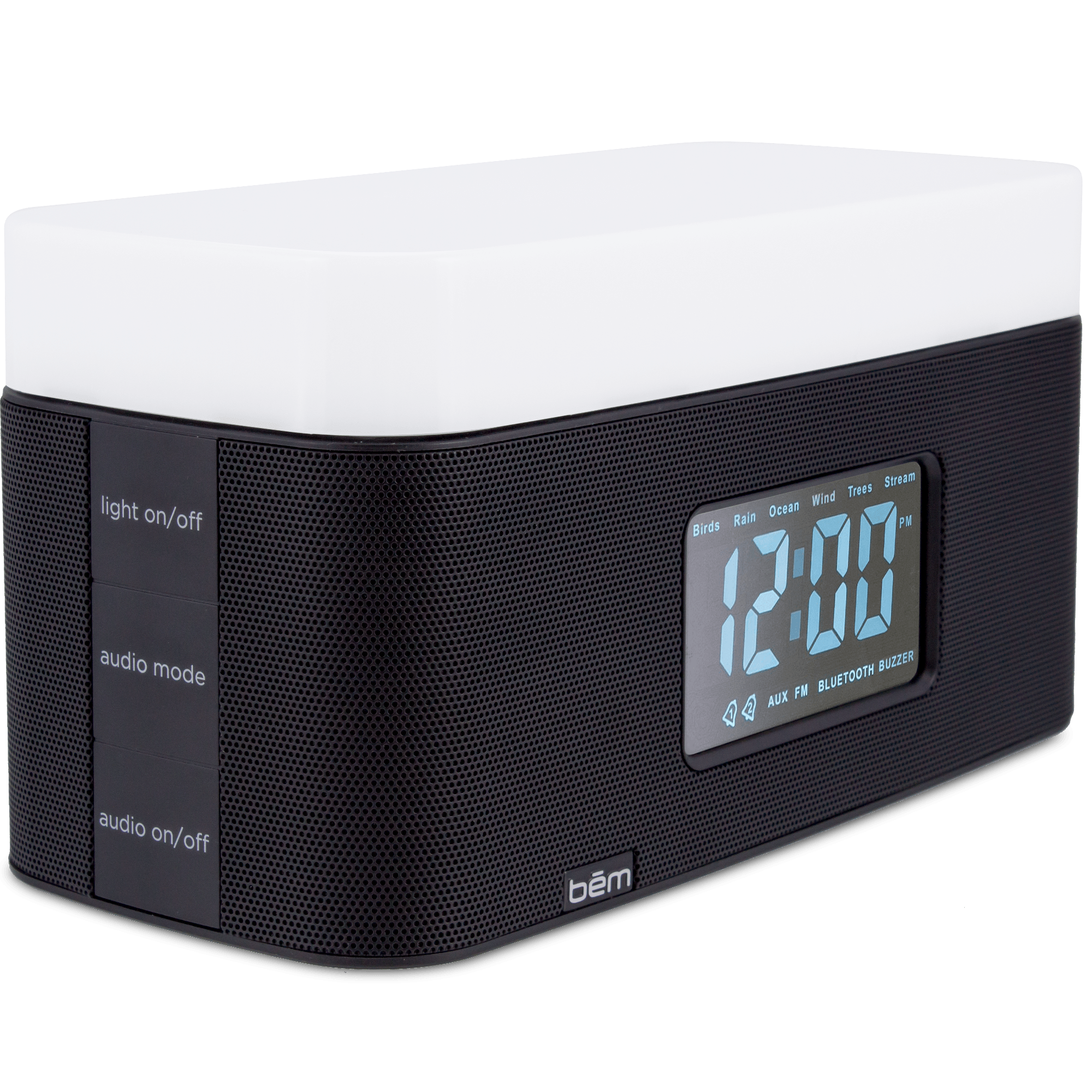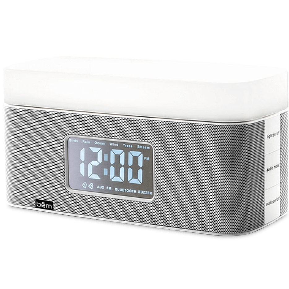 Specs ====- Model: HL2501- 6 built-in nature sounds (Birds, Rain, Ocean, Wind, Stream, and Trees (aka different wind))- Remote control with volume and music/call controls, alarm and clock controls, LCD brightness, LED controls, audio mode, and snooze- Buttons on both side of unit for easy access on either side of the bed- “Wake to light” mode gradually turns on the light- Two alarms can wake you with FM radio, nature sounds, or buzzer- FM digital tuner- Built-in mic for speakerphone use- Speakers: 2.1 Stereo (2x 2.75" speakers with passive units)- 2x USB power ports for charging devices (5V, 1A)- 1x aux-in port- Bluetooth: V4.0+EDR (A2DP, AVRCP)- Bluetooth range: 25-40ft- Power: 12V, 2A- LED power: 1W- Color temperature: 5200K 300K- User manualCondition: NewWarranty: 90 Day BemEstimated Delivery: 8/9 - 8/12Shipping: $5 or free with **VMP**What’s in the Box?====1x Bem Sunrise1x Remote1x 3.5mm Aux cable1x Power cable1x User guidePictures ====GleeeeeeeeeeeenWhiteBlackEverything included3/4 viewOther side of the 3/4 viewBack detail viewPrice Comparison====$89 at Amazon$149.99 ListFind a relevant price comparison? Please share it in a comment in this thread