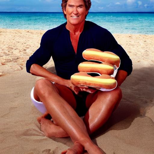 /showme David Hasselhoff sitting on a donut pillow at the beach