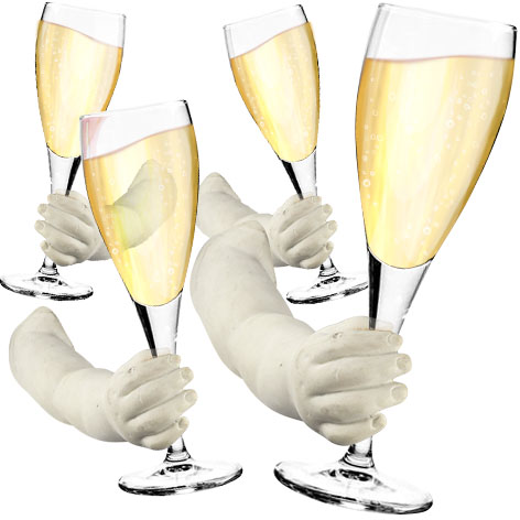I'm not a fan of champagne which works out well for me because my nose is too big to be able to drink from a flute. I have to tilt it so far that the whole thing pours out all over me. With regular alcohol glasses that doesn't start happening until after three or four servings.