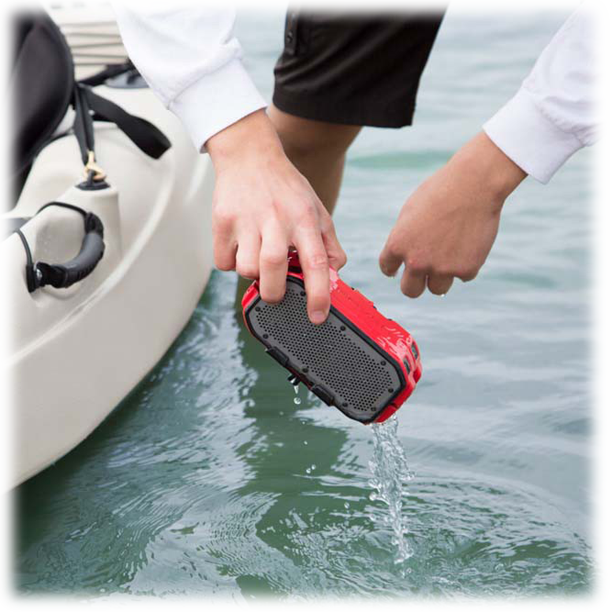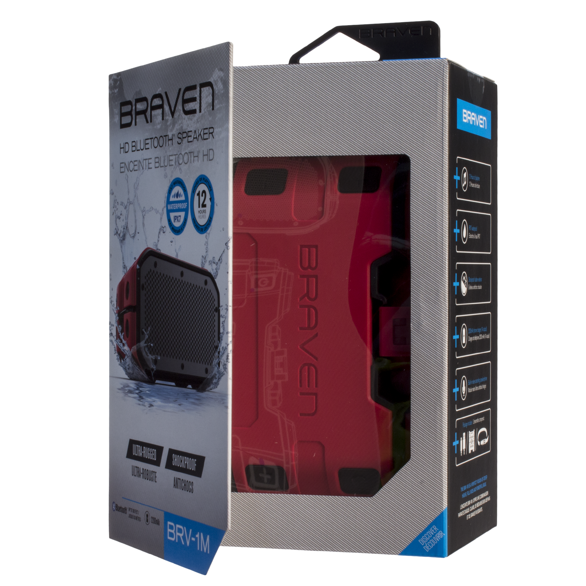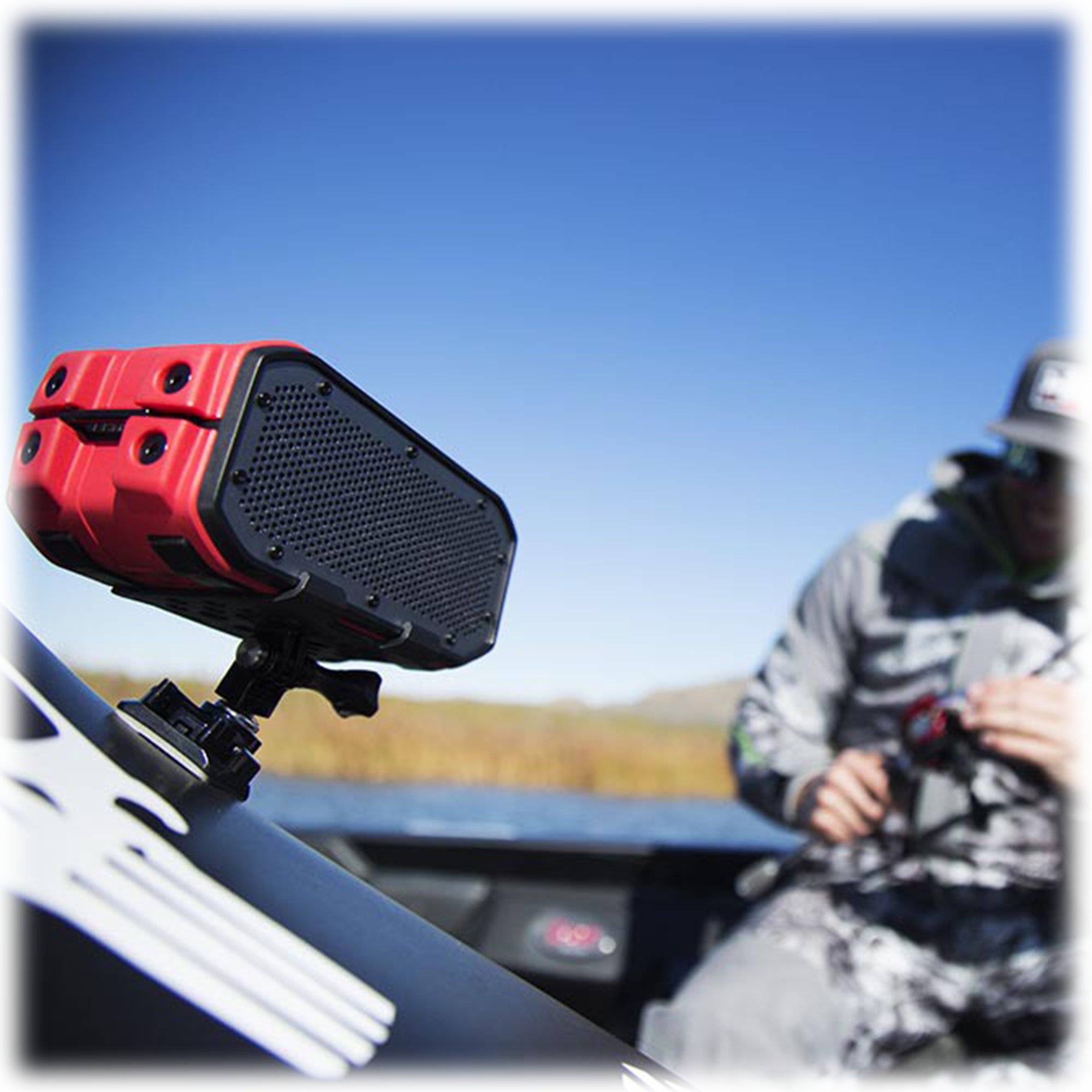 Specs====- Model: BRV-1M- Condition: New- Twin, full-range drivers and a passive radiator- Mount with 1/4 thread screw holes & GoPro-compatible mount- Thermoplastic housing with reinforced aircraft grade aluminum- Titanium tie down bars enable loop and hang functionality- Mic for speakerphone capability- Waterproof rating: IPX7 (safe for 1 meter of submersion for 30 minutes)- Controls: Volume, Skip track (forward and backward), Pause/Resume, Answer/End call- Speaker power: 4, 5W (each)- 2200mAh internal battery- Charges .3A - 1A devices- Playtime: 12 hours- Charges in 2-3 hoursWhat’s in the Box?====1x Speaker1x GoPro Mount adapter with hardware1x StrapPictures====SpeakerBackFrontBack againTopPod Bay Door OpenBoxBikingOops you dropped itBoatingFishingPrice Comparison====$106.20 at Amazon