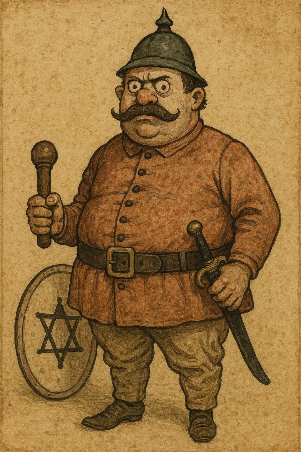 @mediocrebot A Prussian helmet and a shield(?) with the Star of David on it? What is this?