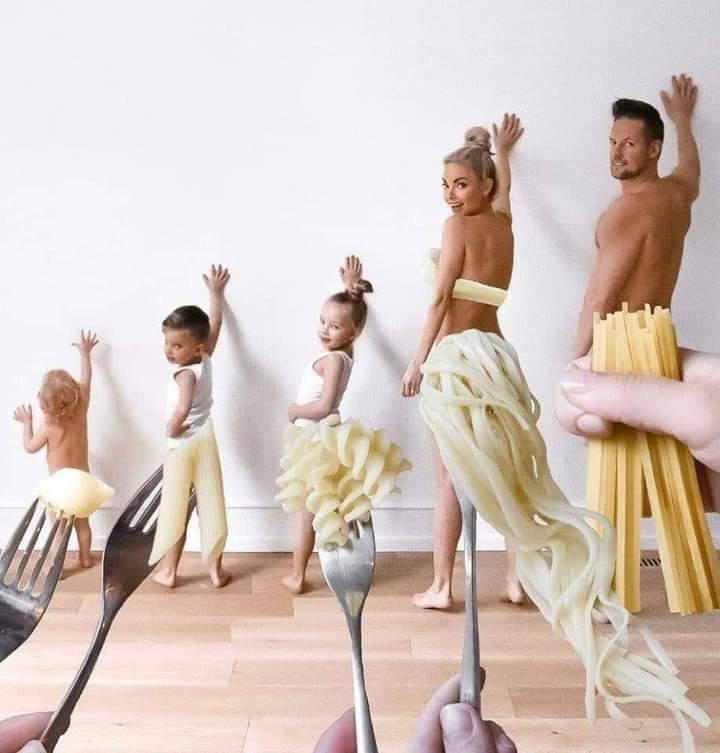 I wonder if this family got a big shipment from Pasta Drop?