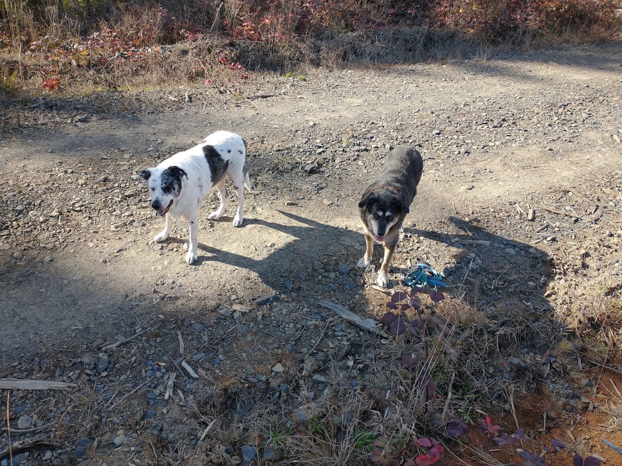 Tweedle-Dee (right) and Tweedle-Dumb-ass (left) (AKA, Willow and Ash) on our lunch-time hike.