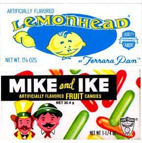 Do these legendary mascots still roam the candy aisles? Sadly, no. In recent years, each company followed a parallel strategy of folding all of their candies into their most recognized brand. So at Ferrara Pan, where Lemonhead rules the roost, their other brands followed suit: Alexander the Grape turned into Grapehead, Cherry Clan became Cherryhead, etc. The success of Mike and Ike convinced Just Born to rebrand all of their chewy boxed candies as different flavors of Mike and Ike. E-excuse me, I-I’ve got something in my eye…