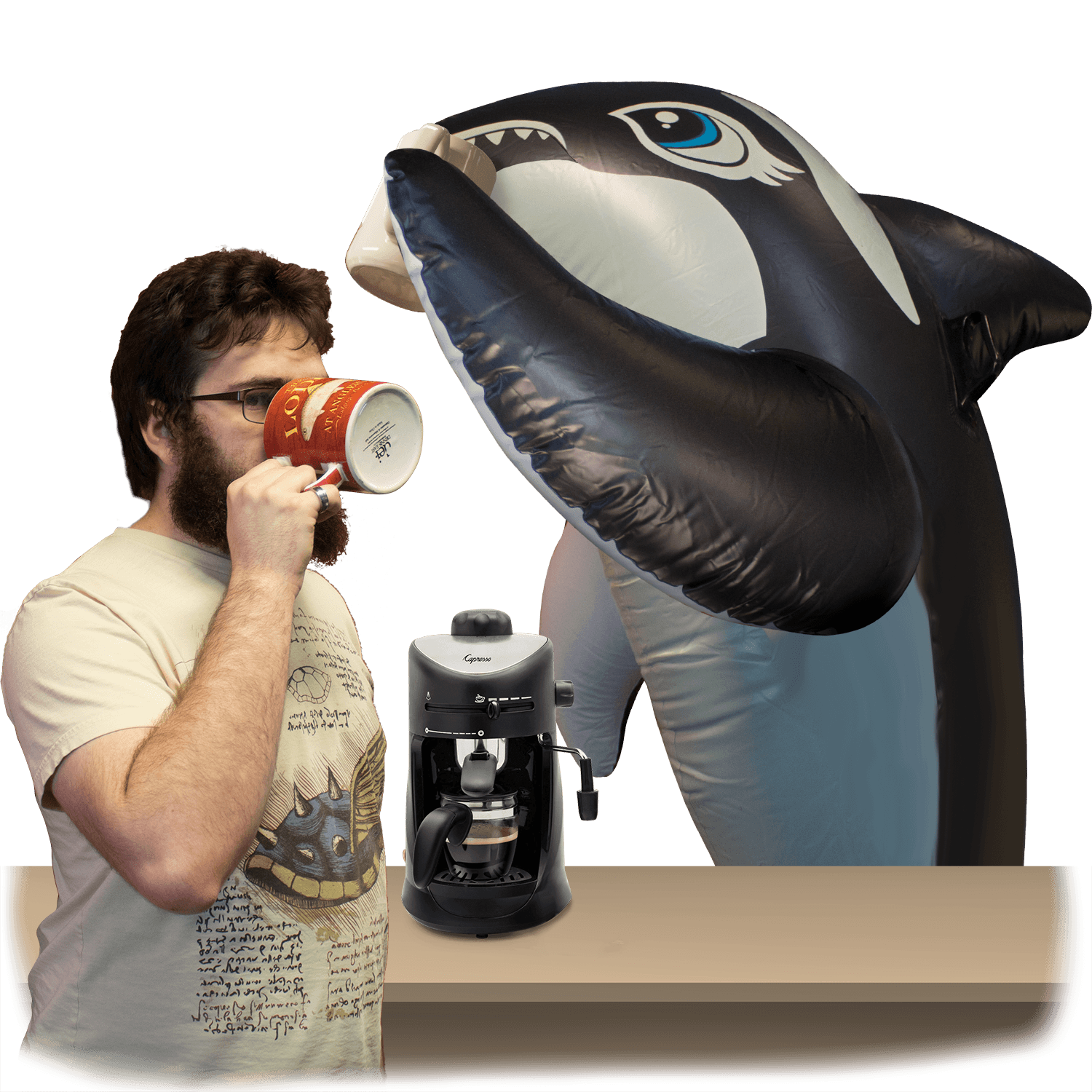 Your inflatable, espresso-drinking shark reminds me of the time I was helping my boyfriend clean a bunch of old stuff out of a storage room in his house and found an inflatable sheep.