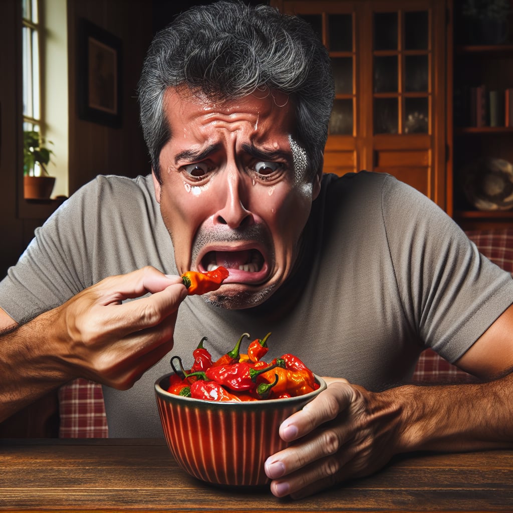 /showme a guy eating a bowl of scorching hot Carolina Reaper peppers and having Instant Regret Karma.