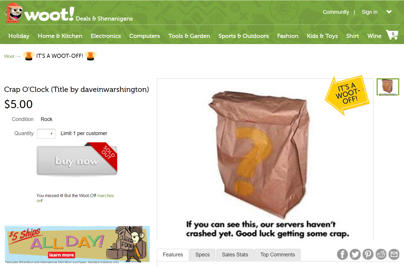 @connorbush Woot crashed on the first BOC of a Woot-off. It's crazy that there are that many people there at 1 am. Last time they switched to a pop-up (Wootsquatch).