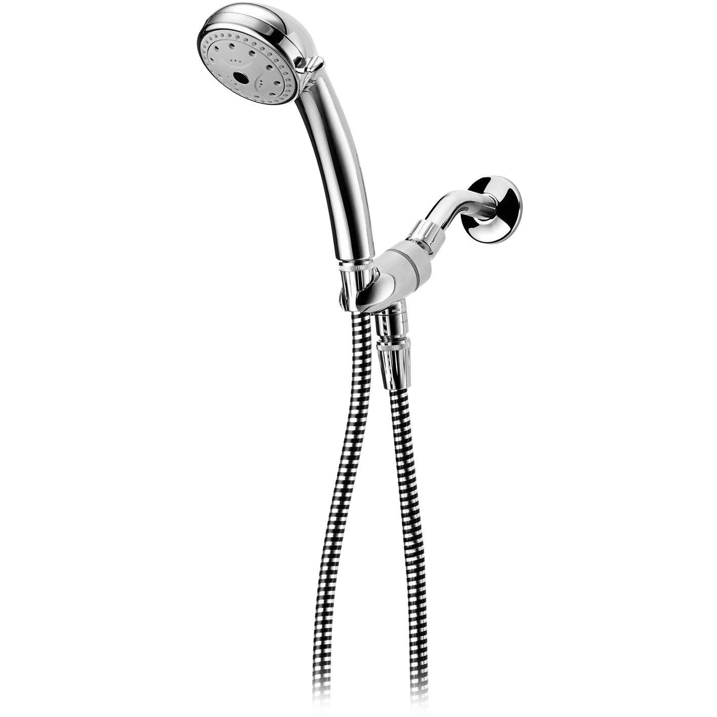 Specs ====- Model: PO5201SR- Chrome finish- 5 modes: Full body, light spray, dual jet massage, aerated, and pause spray (to save water while shampooing)- Anti-clog rubber nozzles- 5 foot tangle-free PVC hose- Water flow: 2.5 GPM (gallons per minute)- Meets ANSI standard A112.18.1- User manualCondition: NewWarranty: 5 Year Pollenex Estimated Delivery: 7/24 - 7/28Shipping: $5 or free with **VMP**What’s in the Box?====1x Showerhead1x Hose1x Arm bracket1x Teflon tape rollPictures ====Hooked upHandleHose wrapped upRetail packagingFive settings!Price Comparison====$51 at AmazonFind a relevant price comparison? Please share it in a comment in this thread